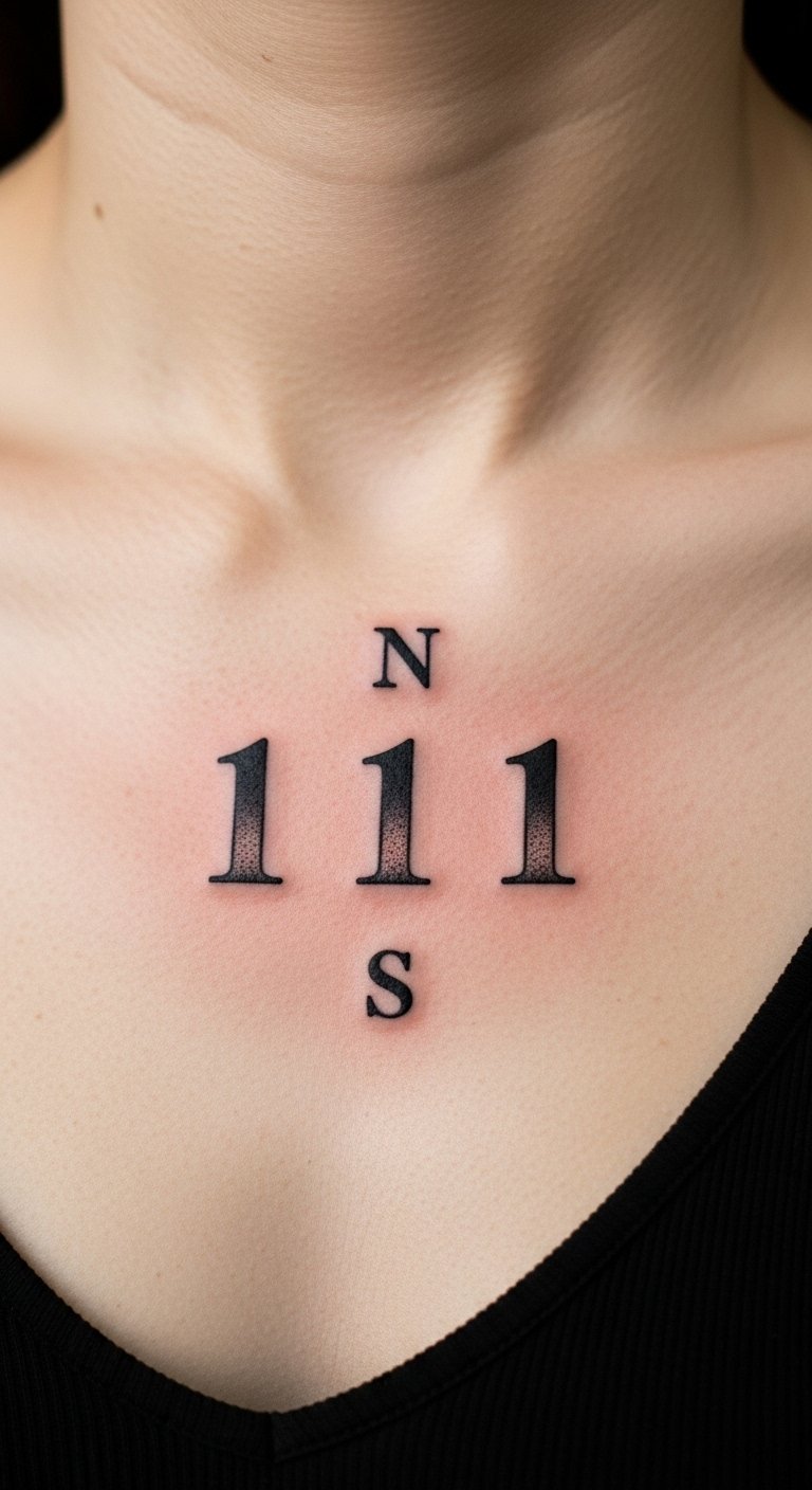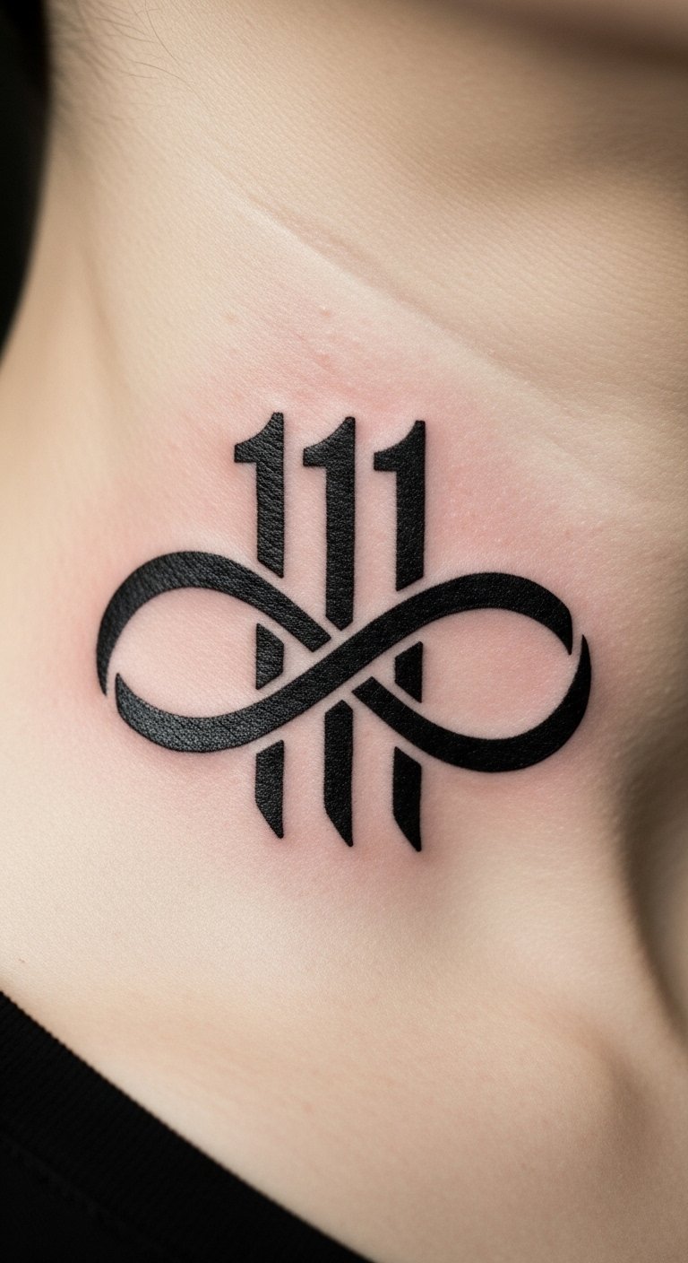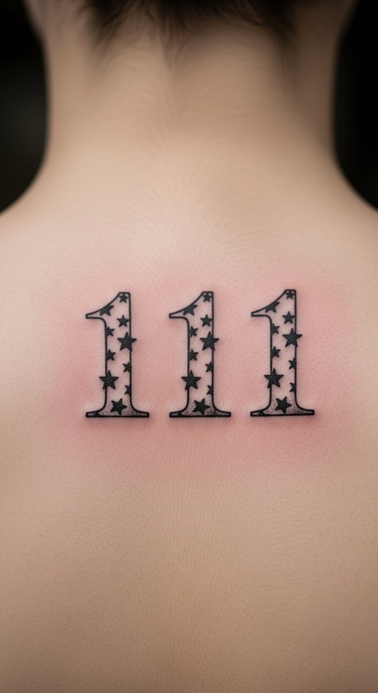 Incorporate stars around the 111 for a cosmic touch. Place it on your back for a bigger canvas. Jot down star patterns in a notebook. Opt for this spot to reveal it on special days.