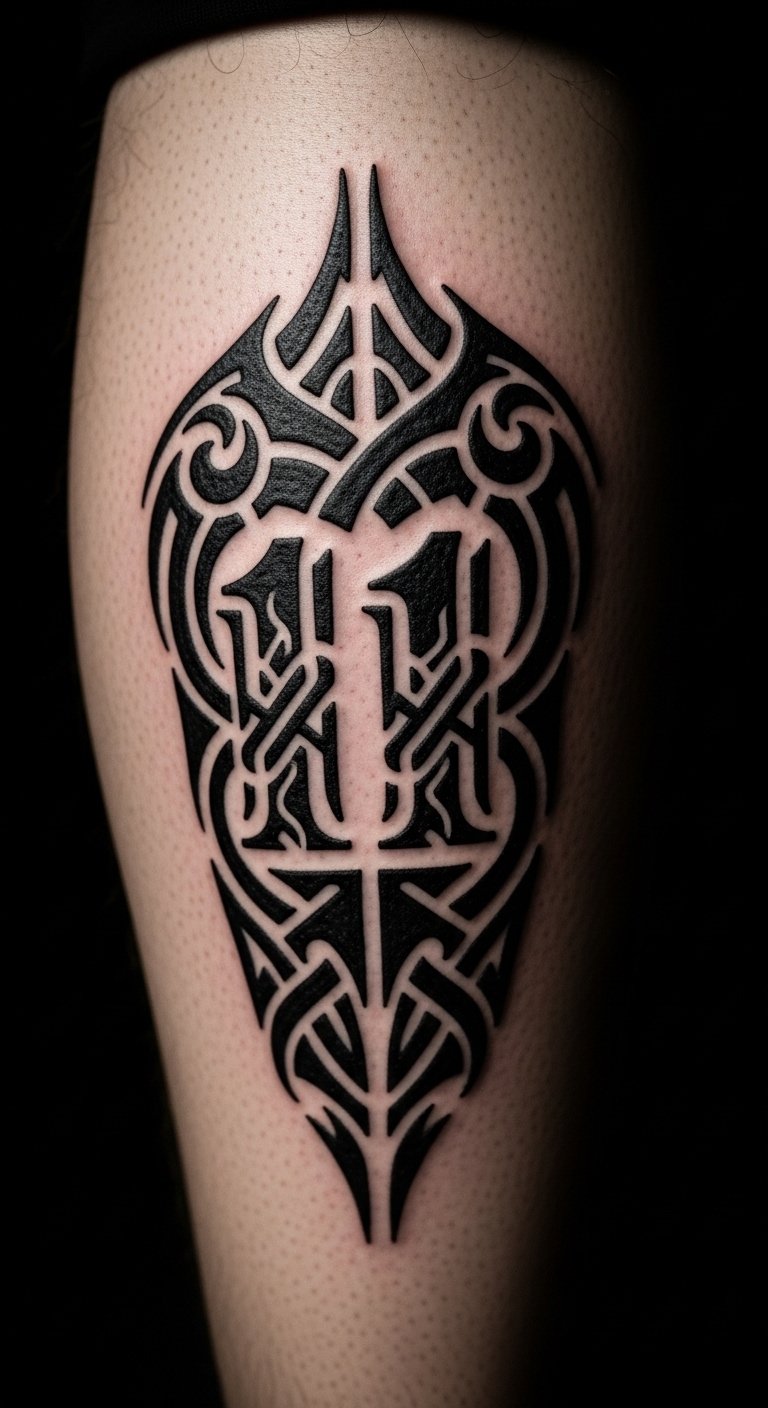 Give 111 a tribal edge on your calf. Add patterns around the numbers for strength. Sketch tribal lines on paper. Go for the calf to show movement.