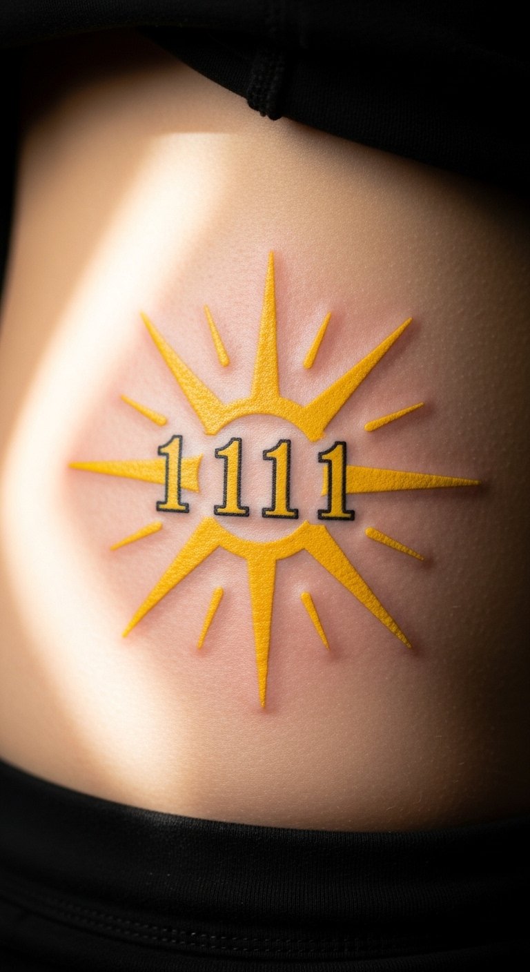 Make 111 a sunburst on your hip. Rays add energy to the numbers. Doodle bursts on paper. Opt for the hip as a personal zone.