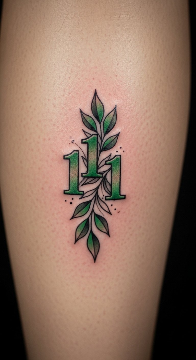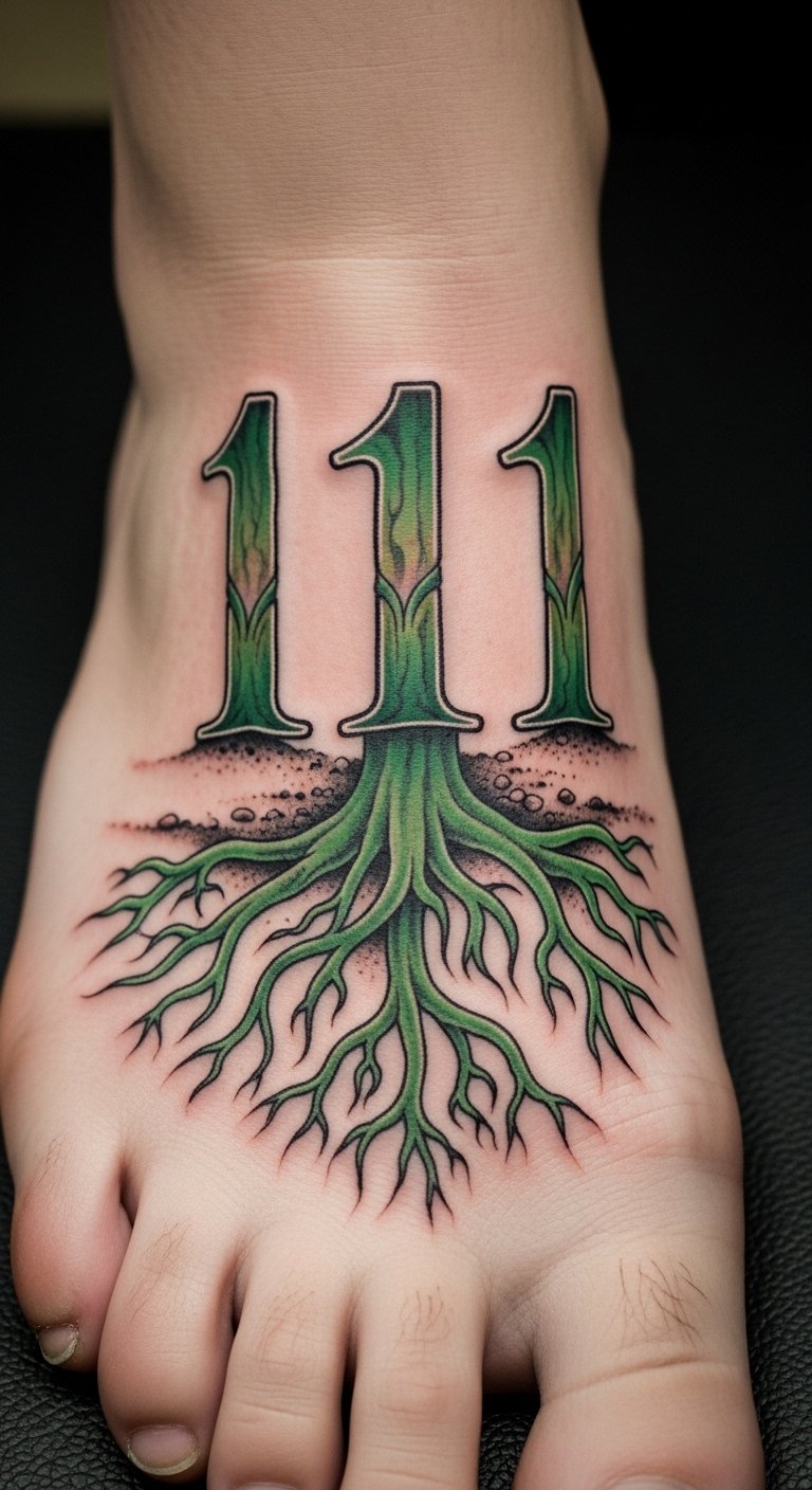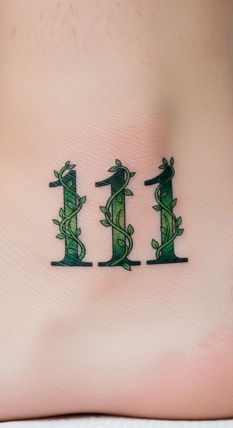 Go for a watercolor effect with 111 on your ankle. Blend soft colors around the numbers for an artistic feel. Sketch ideas on your phone using free apps. Choose the ankle for a discreet spot.