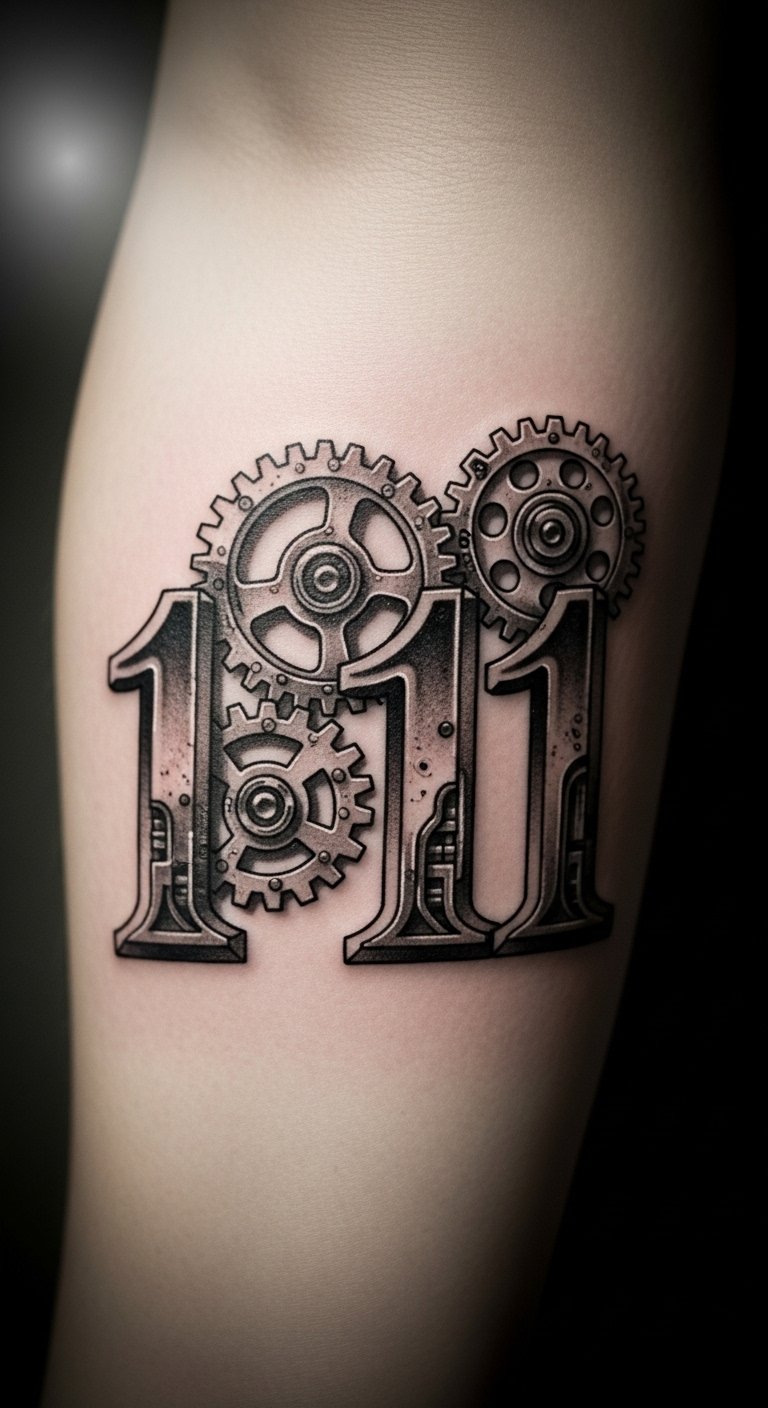 Picture a geometric twist on the 111 symbol. This design uses clean lines to create a triangle with the numbers, blending math and art. Start with a sketch on paper using a basic pen. Choose a spot like your arm for easy visibility. Grab affordable supplies from a craft store—think fine-tipped markers for practice.