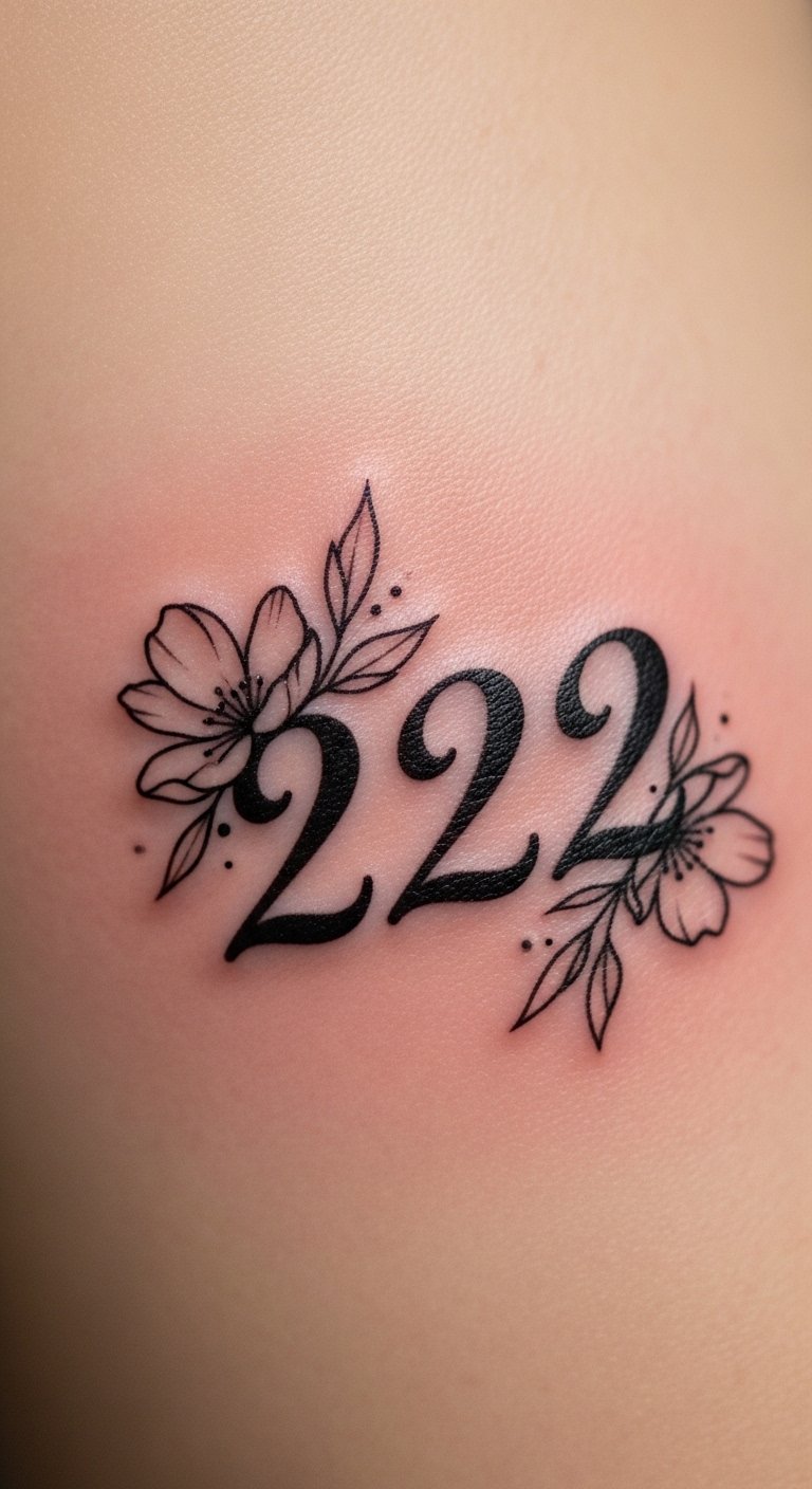 Add flowers to 222 for a nature-inspired feel. Blossoms stand for new beginnings. Sketch flowers with a pencil first. Find free floral patterns online. Place it on your ankle for subtlety. Look for sales at local tattoo spots. Use colored pencils for home trials. Keep flowers minimal to cut costs. This idea matches life changes. Share your sketch with pals. Book a quick slot for the work. Highlight the harmony message. Try temporary tattoos for testing. Make a simple drawing session fun.
