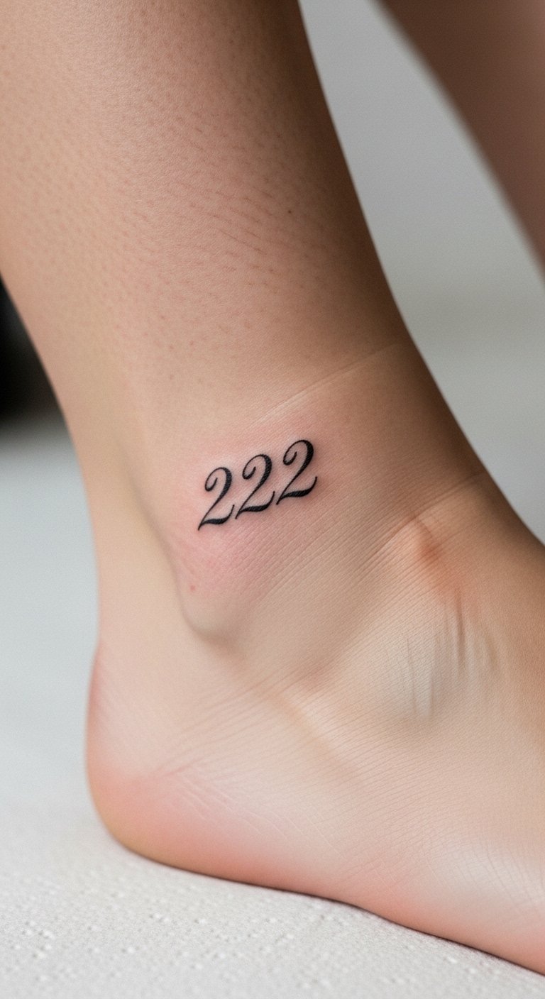 14. Elegant 222 Ankle Tattoo