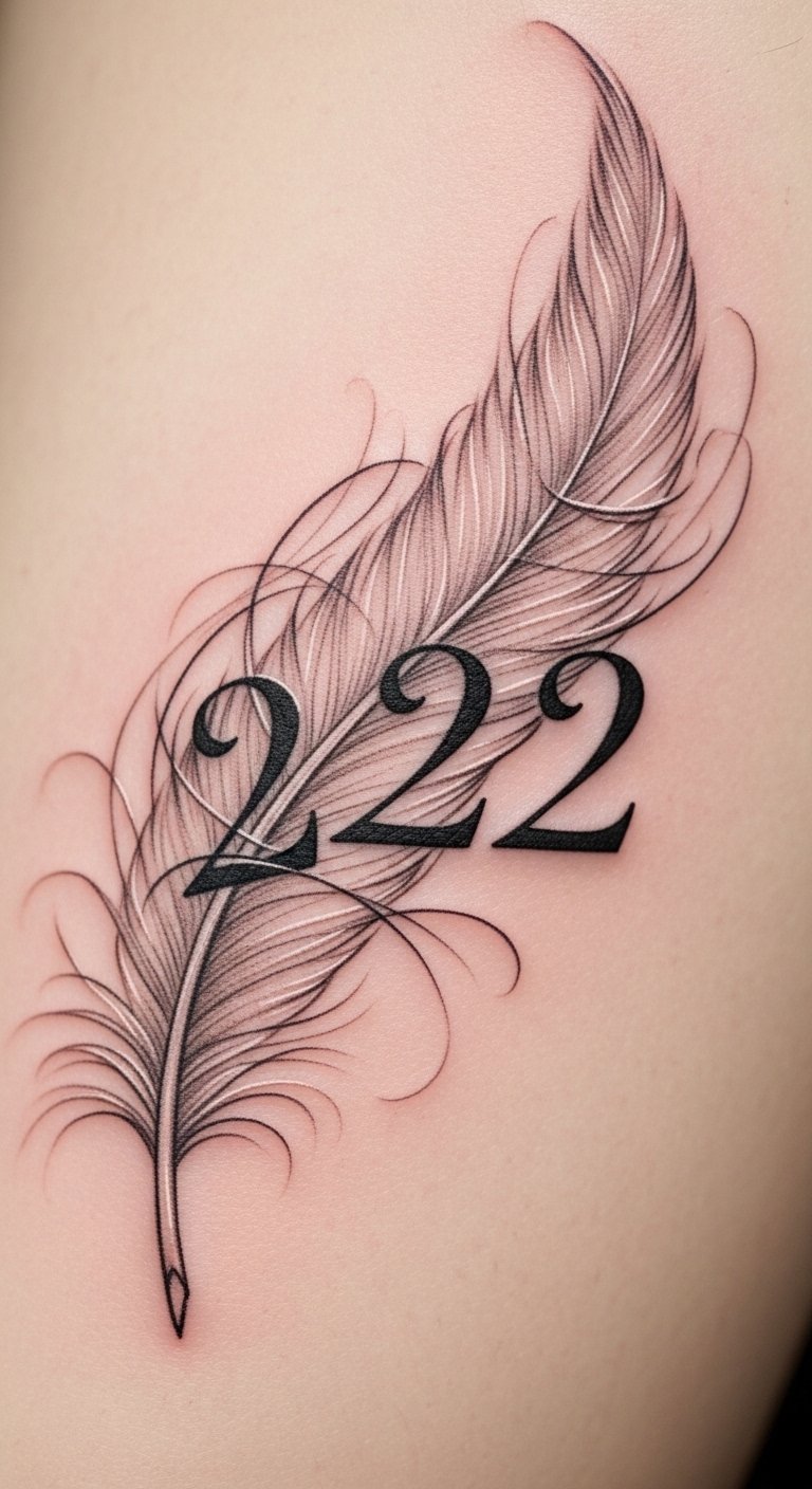 Add feathers to 222 for a light touch. Feathers mean freedom and growth. Draw feathers simply. Access free feather ideas. Put it on your arm. Pick a deal-making artist. Use feathers for inspiration. Keep designs basic. This fits free-spirit types. Show your work. Arrange a quick session. Highlight the uplifting theme. Practice with paper cuts. Turn it into a light activity.