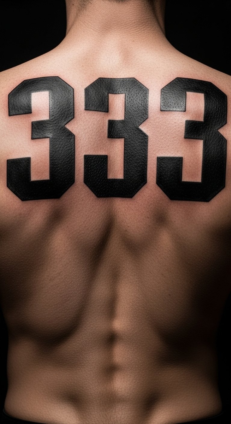 Make 333 bold on your back for a powerful presence. It stands for strong guidance. Budget $180. Outline on large paper first. Try on a T-shirt with markers. Use thick lines for impact. Position centrally on your back. Wear loose shirts afterward. Tie to leadership roles. Spiritual leadership feels grand. Keep it centered and strong.