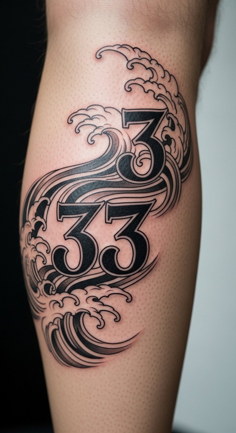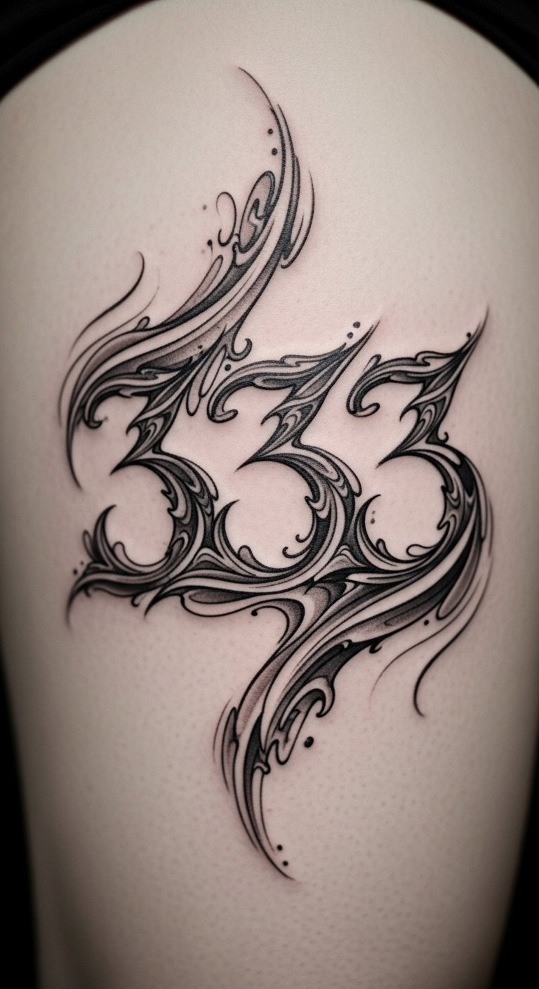 Try abstract swirls with 333 for a fluid look. It represents ongoing growth. Budget $120. Swirl designs on canvas. Practice on soft materials. Let patterns flow from numbers. Position on your thigh. Use protective wraps. Connect to change journeys. Emerging trends feel fresh. Keep swirls loose.