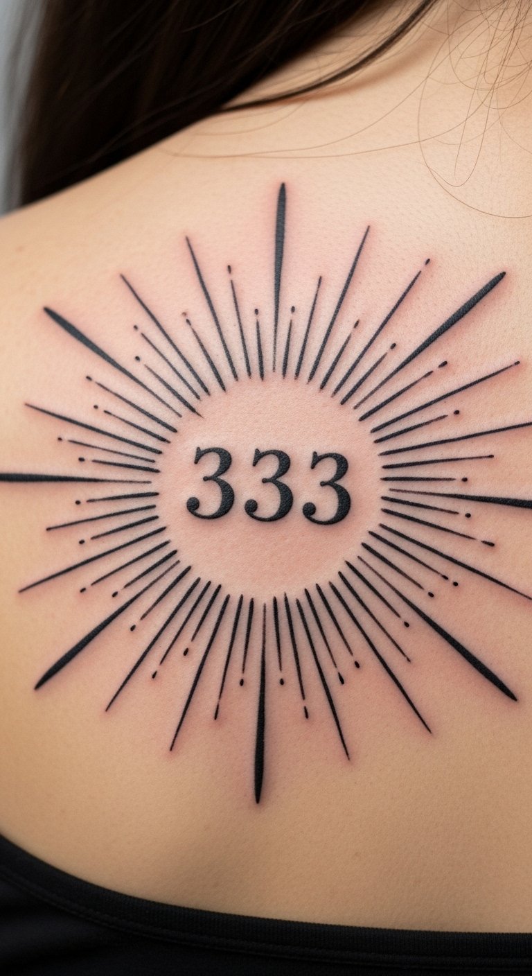 Add sun rays to 333 for light and energy. It brightens your spiritual path. Budget $130. Draw rays from numbers. Test on sunny drawings. Keep rays radiating out. Put on your upper back. Wear sun-protective gear. Tie to positive days. Divine communication shines through. Keep rays even.
