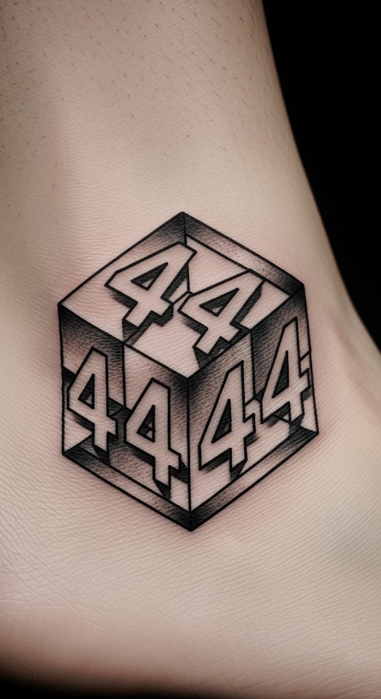 Turn 444 into a geometric cube for added strength. It represents solid foundations in your world. Opt for basic shapes to stay within budget. Draw a cube outline at home with a ruler. Look for artists who specialize in simple lines for less money. Put it on your ankle for a hidden spot. Use it to spark quick reflection moments. Try paper cutouts for DIY ideas. This design suits anyone seeking balance. Practice with graph paper sketches. Keep it as a personal anchor point.
