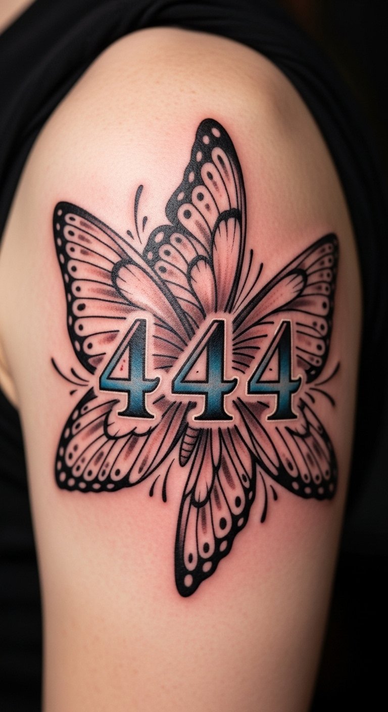 Encircle 444 with a butterfly for transformation vibes. It nods to new starts and freedom. Go with outline butterflies to save cash. Draw them around numbers on paper for fun. Pick a local artist for affordable sessions. Position it on your arm for visibility. Make it part of your evening unwind routine. Try coloring pages at home for ideas. This design adds a fresh feel to your ink. Practice with simple stencils. Use it as a symbol of progress.