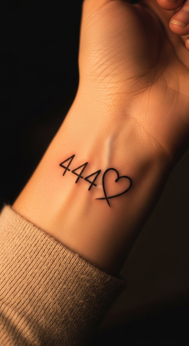 Add a heart to 444 for love and ties. It connects to relationships and care. Choose simple hearts for affordability. Sketch them with 444 on paper. Search for heart-themed deals. Put it on your wrist for heartbeats. Let it beat with your emotions. Try heart drawings at home. This design warms your connections. Use stickers for previews. Feel it in your core.