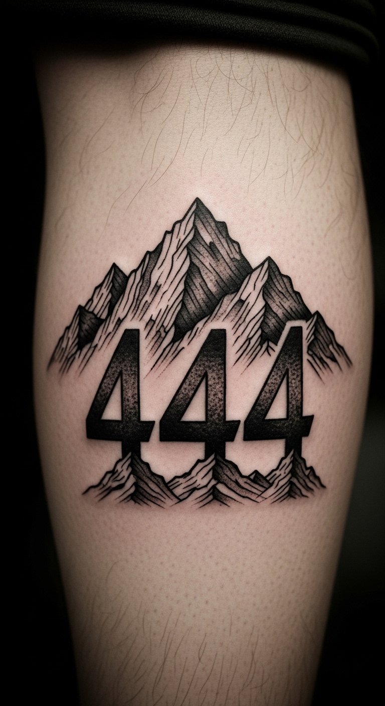 Top 444 with mountain peaks for climbing high. It represents determination and heights. Stick to basic peaks for savings. Sketch mountains with 444 on paper. Find nature-inspired artists cheaply. Set it on your leg for journeys. Let it peak your efforts. Try hiking sketches at home. This design summits your goals. Use rocks for ideas. Climb with it daily.