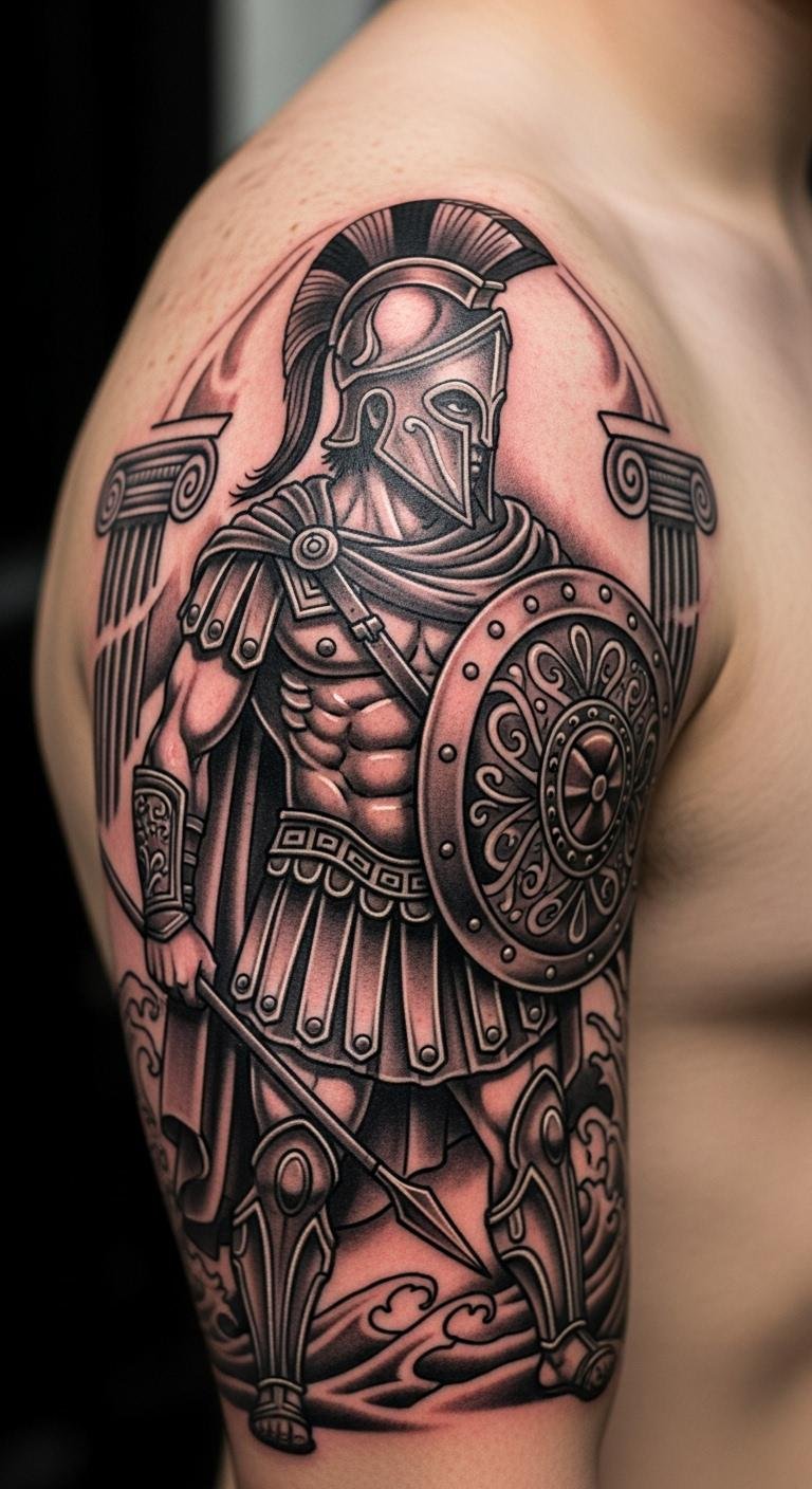 Think about a design that pulls straight from Greek tales. Start with simple armor shapes and a warrior pose. This idea keeps things authentic yet easy to adapt. Break it down: sketch on paper first using free online templates. Pick a local artist who works with basic black ink to save money. Bold lines make it pop without extra cost. Add a small Greek key border if you want more detail, but keep it minimal. Use household items like a mirror for placement checks before committing. This approach lets you honor the myth on a budget. Experiment with DIY stencils from printer paper and pens. Focus on what fits your story—maybe tie it to a personal challenge. End up with something meaningful that doesn’t empty your wallet. Simple tweaks, like adjusting size, help avoid regrets.