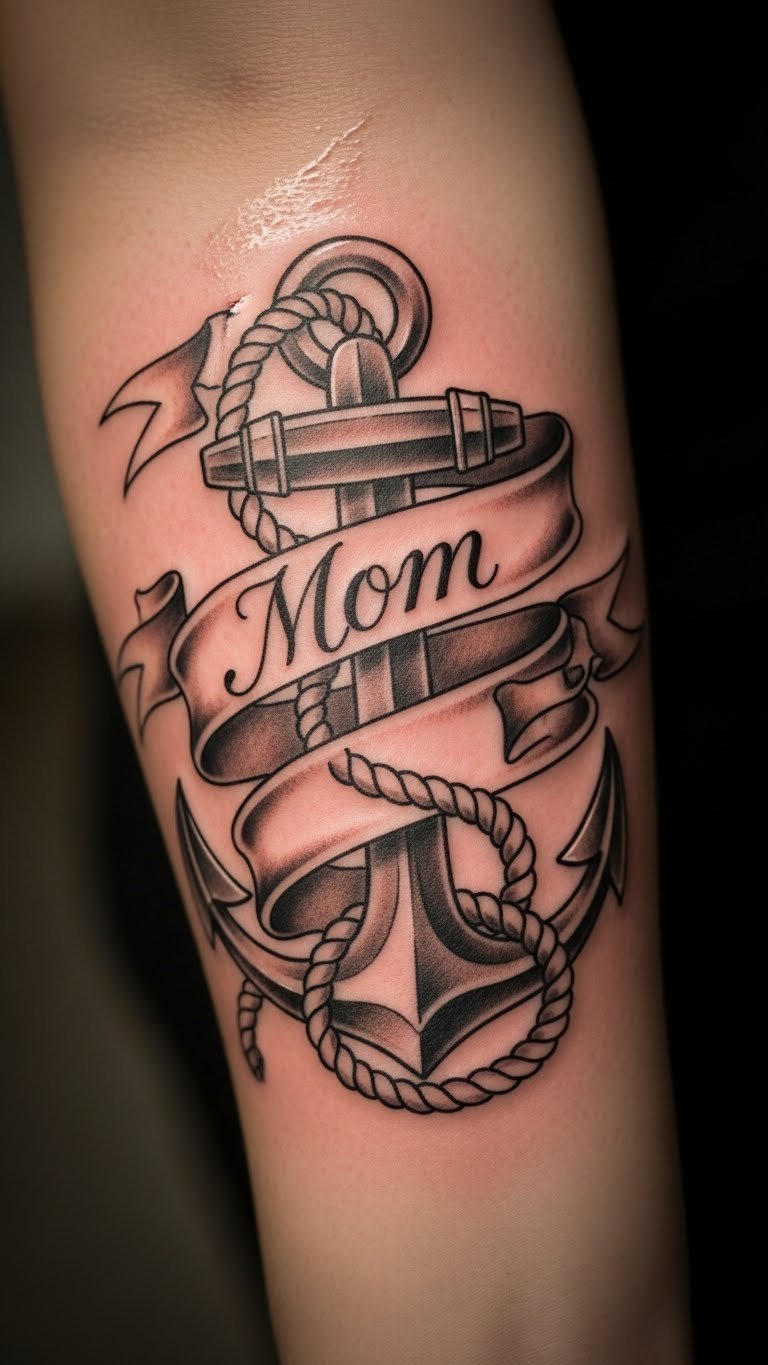 A banner on your anchor adds a message. It enhances the stability symbol. The banner waves gently. Write a word on paper banner attached to your drawing. Paper is free. Make a fabric banner at home for $5. Position it on your forearm. Expect $50 for the work. Use plain text to keep it simple. This personalizes without fuss.