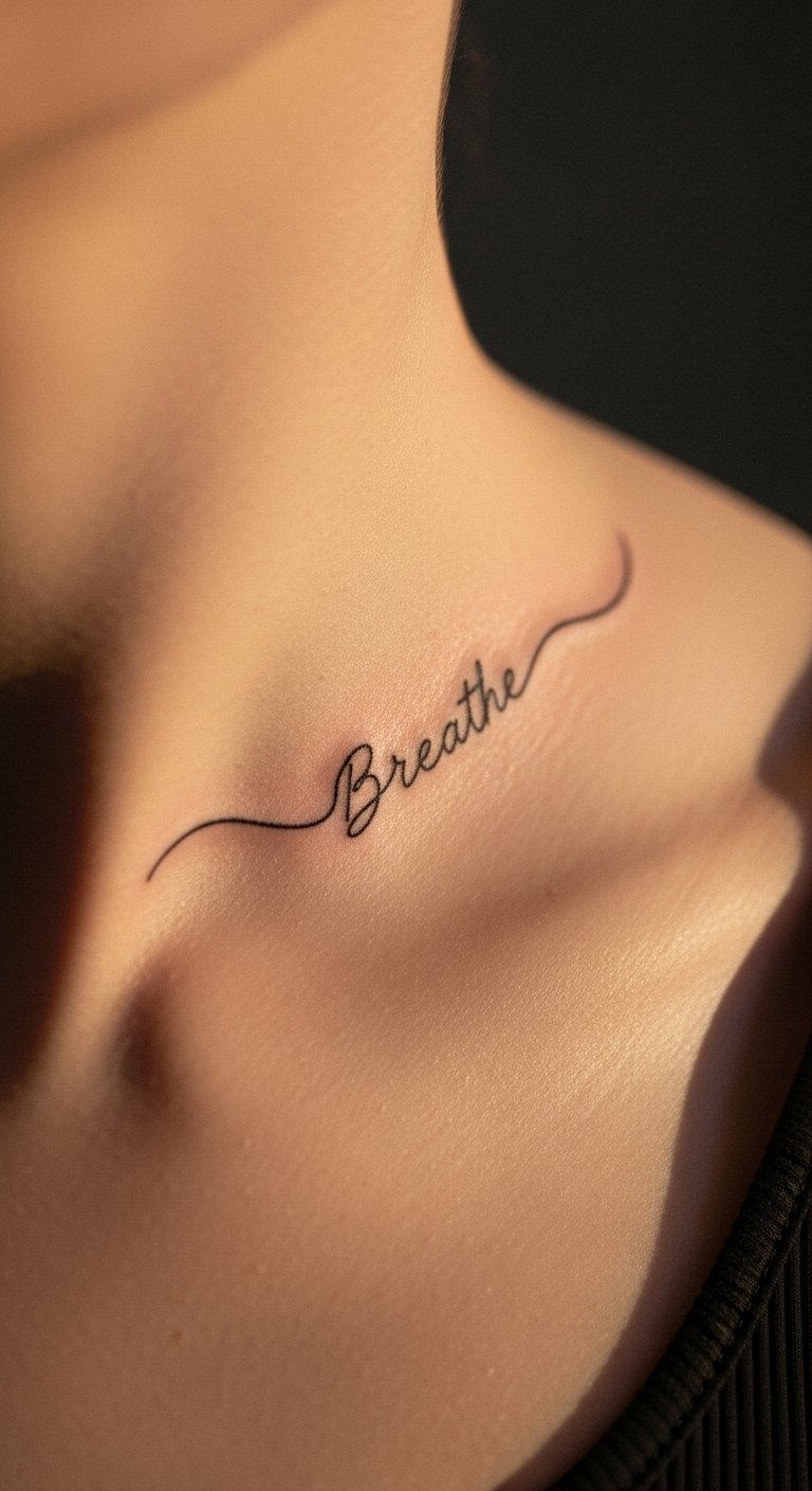 A “Breathe” tattoo helps in stressful times. It’s a quick cue to slow down and relax. Perfect for managing daily anxiety. Write it out on paper to see how it looks. Use online generators for free fonts. Get it done for under $40 at a walk-in shop. Position it on your hand for easy access. Try drawing it with eyeliner first. Make it part of your routine, like during a walk.