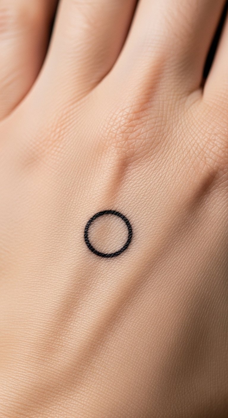 A circle tattoo represents complete awareness. It’s endless support. Trace circles on paper. Search for sessions. About $25. Place on hand. Try circle stickers. Share the loop.