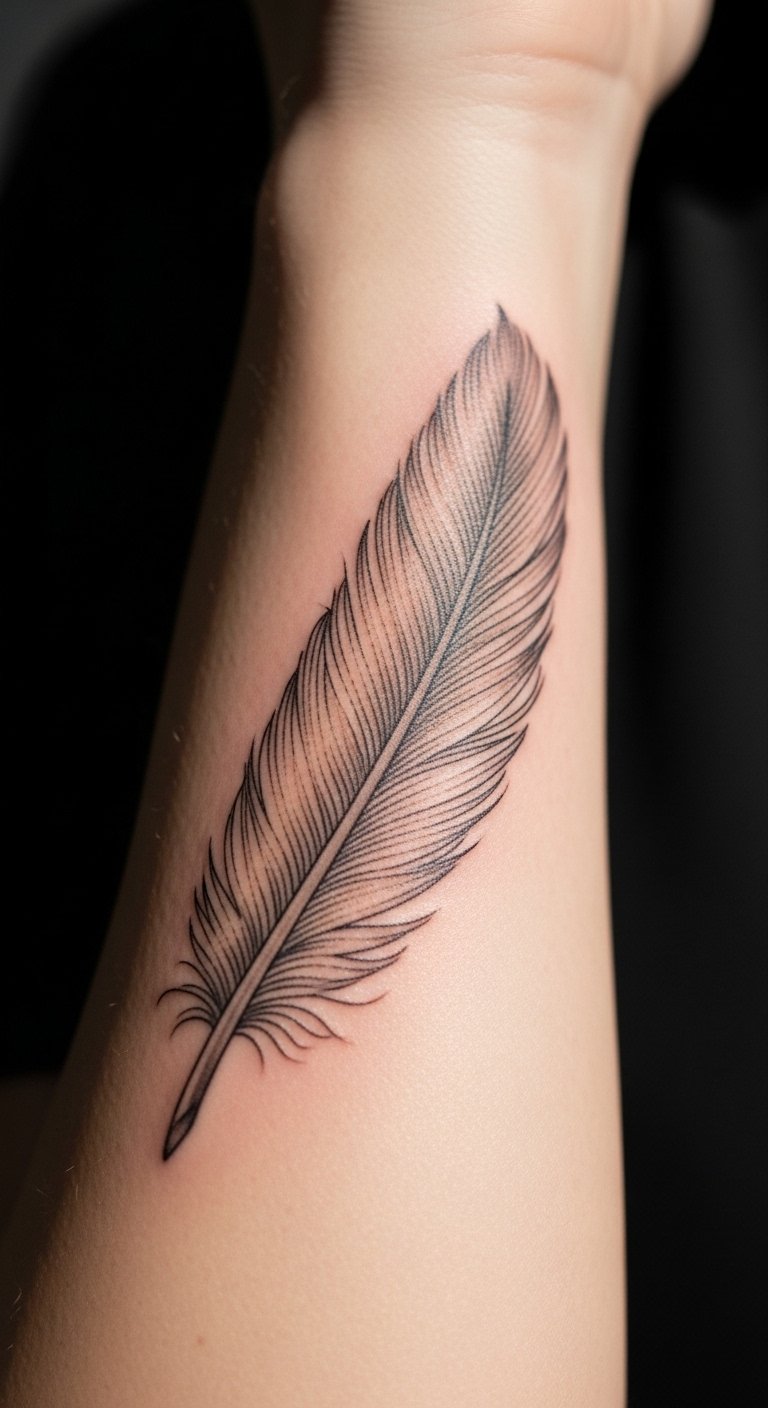 A feather tattoo feels light and free. Talk to artists for tips. Draw feathers at home. Find affordable ones. Less than $45. Place on arm. Use feather pens. Soar easy.