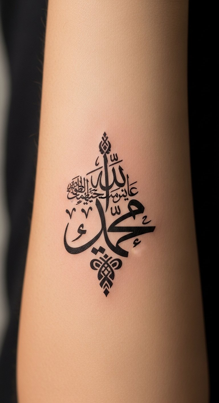 Add shapes for edge. Geometric Arabic designs create modern patterns. Choose a key word and add triangles or lines. Draw grids on paper to plan. Place it on your chest for impact. Select basic inks for savings. Find artists via social shares. Try paper cutouts for previews. Combine elements for balance. This keeps things structured. Use household items to mock up.