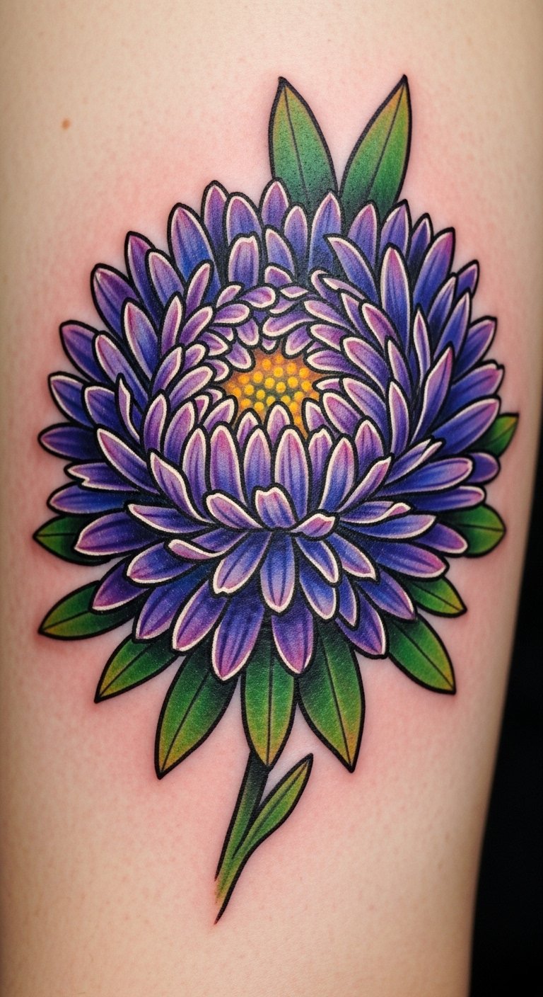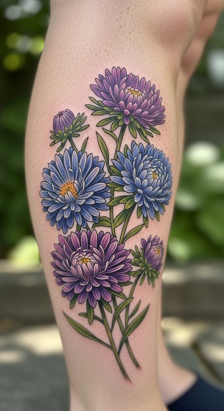 Blue Aster Tattoo for Trust and Resilience