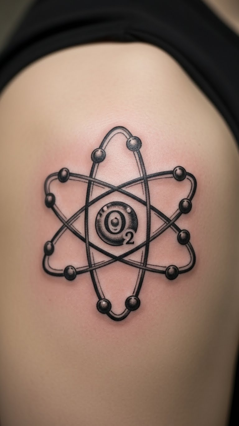 Oxygen tattoos stand for life and energy. Picture electrons buzzing around a core. It’s a great pick if you love nature or health.