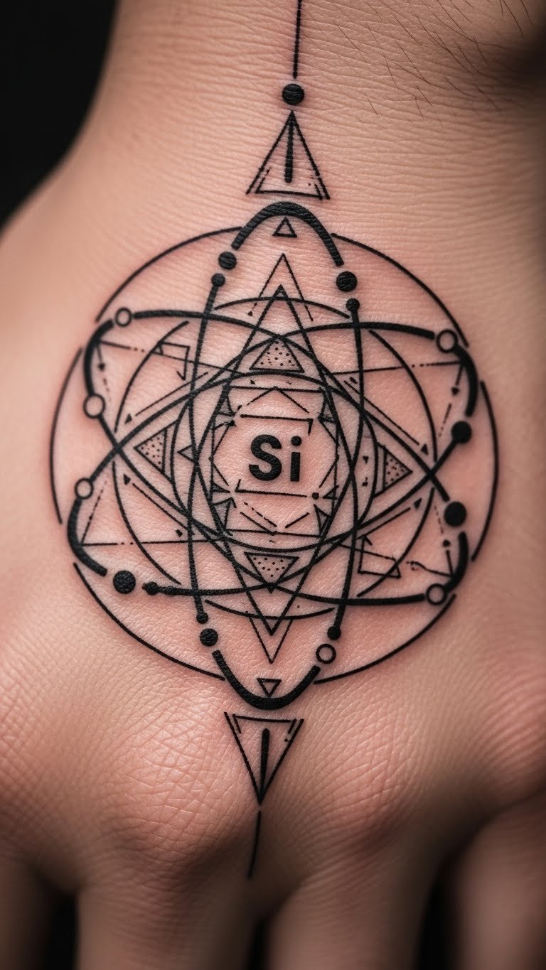 This design works for anyone new to tattoos. It symbolizes basics of science. Pair it with a simple band for extra style. Keep it small to avoid high costs. Aim for a local artist who offers deals.