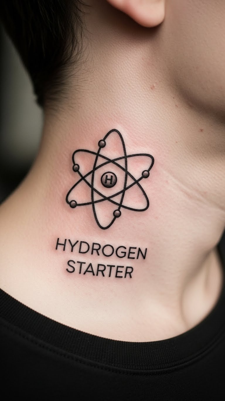Think of the hydrogen atom as your starting point. It’s the simplest design out there. A single electron circles a nucleus. This makes for a clean, small tattoo. You might place it on your wrist for easy visibility.
