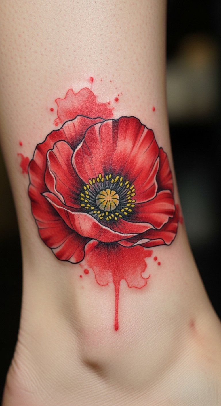 A Poppy tattoo in red stands for memory. Place it on your ankle for a quiet nod to loved ones. Grab colored markers and paper to plan. Draw the petals yourself for fun. Find an artist online who specializes in colors for around $150. Mix in white ink for contrast. Bold the key: remembrance mark. Keep sentences short: Start small. Use what you have at home. A basic drawing app on your phone works. Print and show it to the artist. This cuts prep time. Opt for one color to save cash. Red ink pops and lasts. Test with henna from a drugstore. Apply it easy. Wear for a week. See if you like the spot. It’s a smart, cheap step. Your tattoo will tell a story.