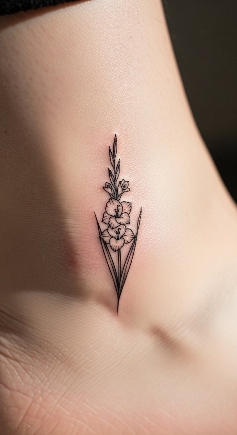 A tiny Gladiolus on your ankle speaks volumes. It’s all about quiet strength. Draw a basic stem on paper with a pencil. Keep it straightforward. Find a nearby shop that offers small tattoos for $50 or so. Add a dot for detail. Bold the key: ankle strength. Simple steps: Grab a pencil. Sketch fast. Show your drawing at the studio. They can tweak it quick. Choose thin lines to save on ink. It costs less and looks neat. Use a washable marker to preview. Draw on your skin and walk around. See how it fits your style. This hack makes decisions easy. Wear your ink with pride.