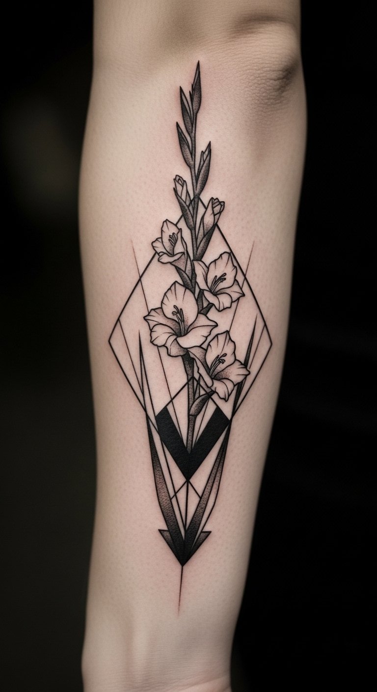 Try a geometric take on Gladiolus. Sharp lines make it modern and strong. Draw shapes with a ruler on paper. Keep it geometric fun. Look for tattoo pros who handle patterns for under $120. Add triangles for edge. Bold the key: geometric strength. Easy ideas: Use a ruler. Sketch shapes quick. Bring it to the artist. They refine fast. Stick to black ink for savings. It pops without extra cost. Practice with stencils you print. Cut and trace on paper. See how it aligns. This step helps a lot. Make your tattoo stand out.