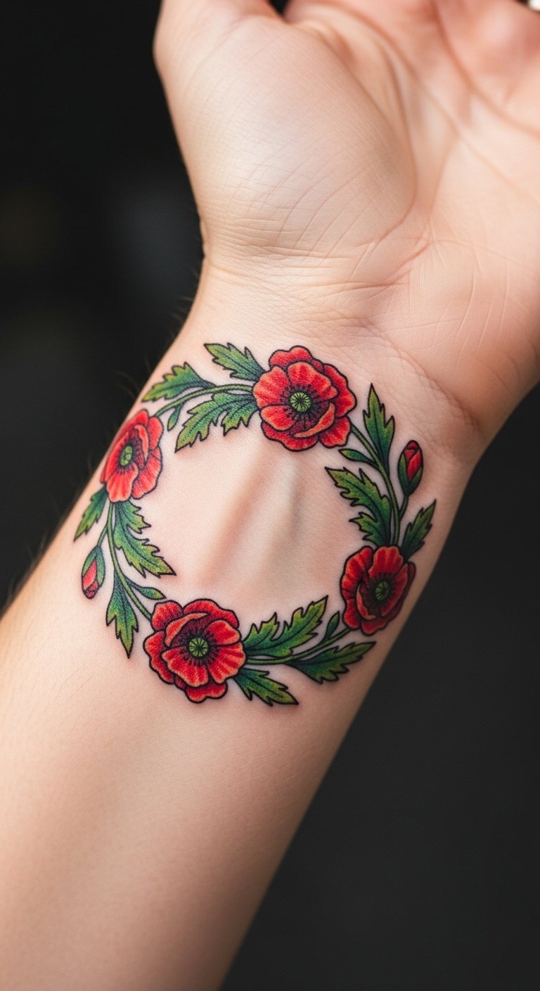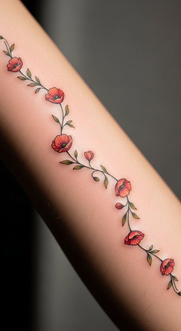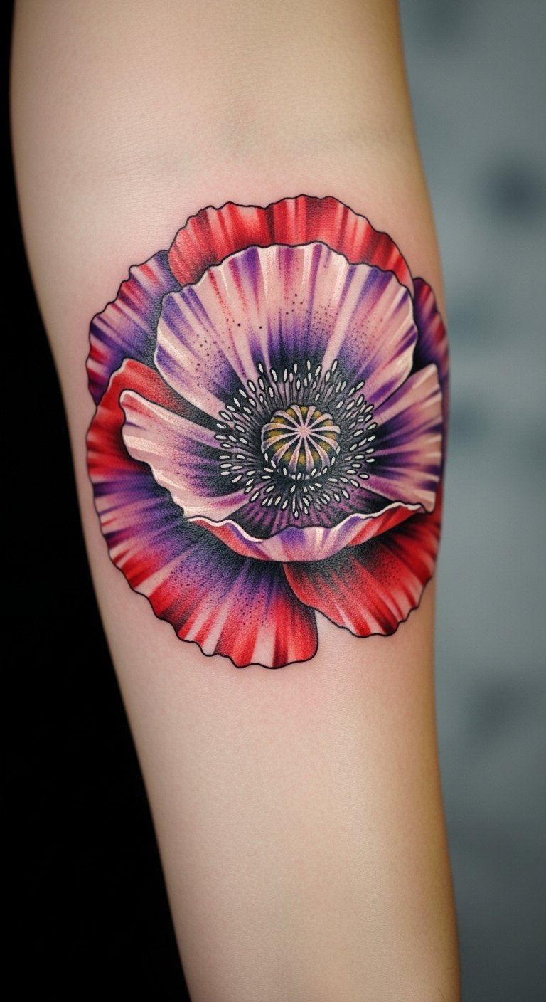 Use multiple colors for a Poppy on your forearm. It shows layered remembrance. Mix colors on paper first. Test blends. Find color pros for $170. Choose three hues. Bold the key: color layers. Tip: Paints at home. Blend quick. Share with artist. They match it. Limited palette saves money. It’s striking. Use colored pencils for preview. Draw and check. See the pop. This makes it fun. Brighten your story.