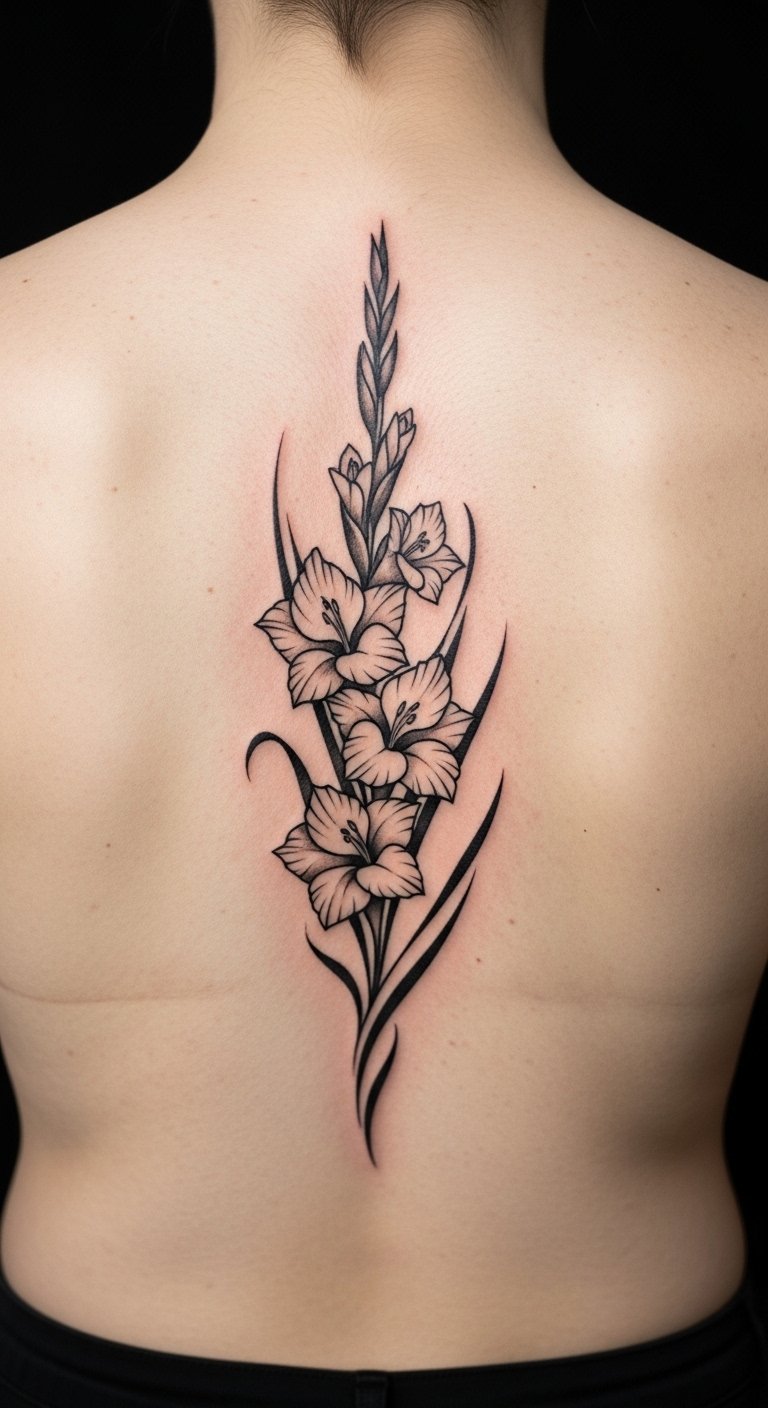 Go abstract with Gladiolus on your back. It shows creative strength. Doodle swirls on paper. Let it flow. Search for abstract artists around $170. Add curves for fun. Bold the key: abstract power. Ideas: Paper and doodles start it. Draw freehand. Share with the pro. They enhance it. Black ink stays affordable. No fuss needed. Use abstract stencils online. Print and trace. Check the look. This sparks ideas. Make your tattoo unique.