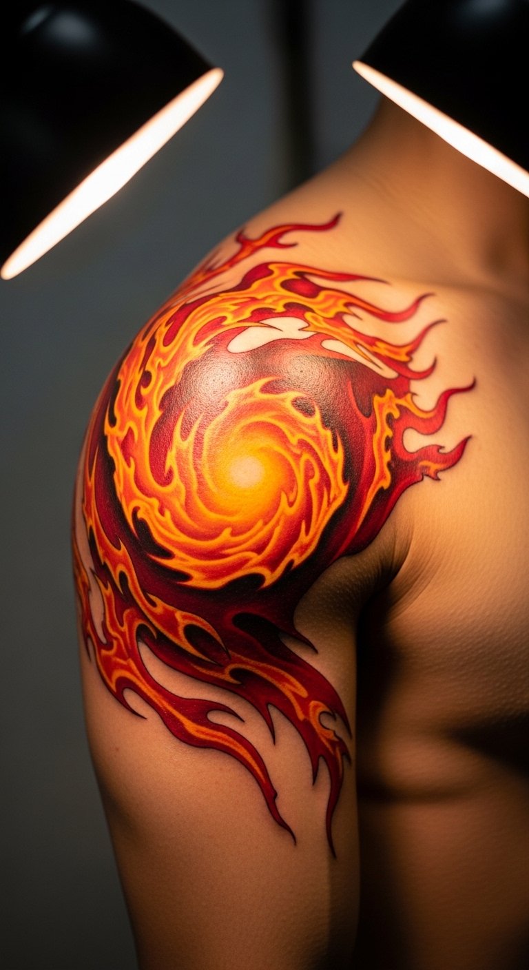 Fire tattoos bring energy and passion to your skin in a straightforward way. Draw quick flame shapes with colored pencils to test ideas. Use budget apps like free drawing software to create digital versions. Choose inks that hold color well; look for sales online to keep costs low. Place them on areas like the upper arm for balance. Add a small detail, such as a heart, to personalize it. Practice with temporary tattoos from the drugstore to see how it feels. These designs highlight strength without overwhelming your style. Stick to simple shapes for an affordable artist session. Focus on spots that match your routine, like under sleeves.