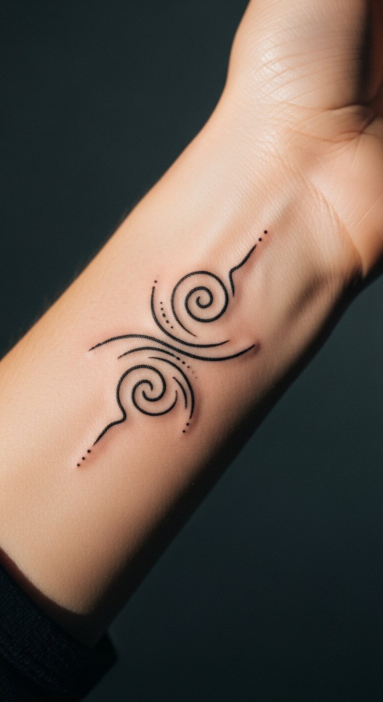 Air bending tattoos keep things light and simple for everyday wear. Sketch basic swirls on paper with a pen to start. Download free apps to tweak designs on your device. Opt for black ink kits that are easy on the wallet. Put them on wrists for a quick glance. Include a tiny arrow for a personal story. Try stick-on versions from craft stores to experiment first. This style fits busy days with its clean vibe. Use household items like string to trace patterns at home. Choose areas that stay covered when needed.