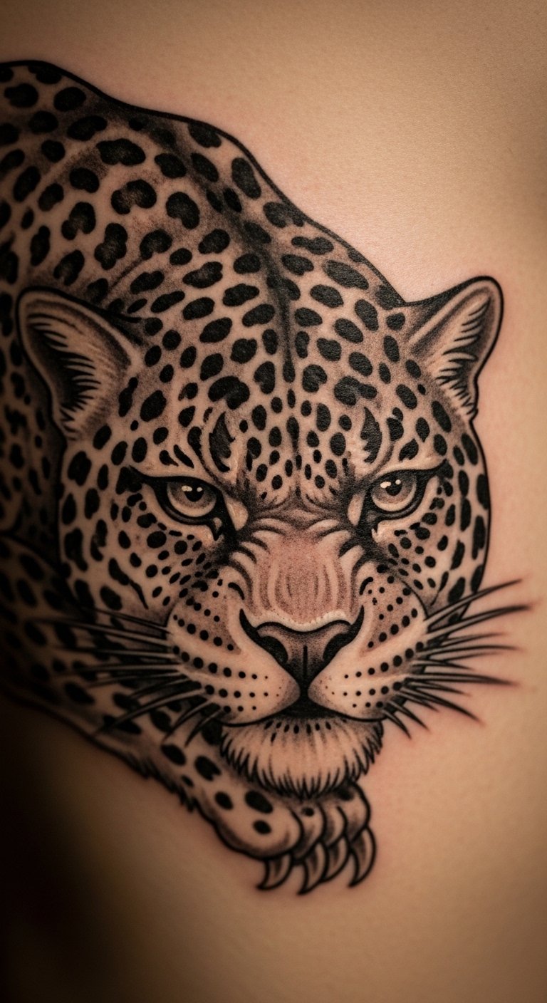 Channel a jaguar for fierce inner power. Sketch on cardboard with old markers for free fun. Use sticker tattoos under $5 to experiment. Place on your side for a personal secret. Mix with modern dots for uniqueness. Opt for grayscale to cut costs. This tattoo fuels your resolve. Advice: Link it to workout routines for extra edge. Find artists through friends. Unleash your wild side daily.