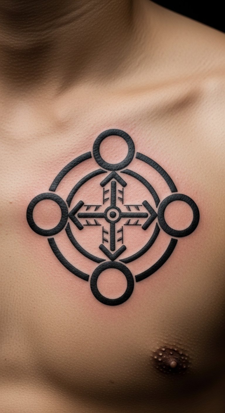 Circles unite people. Plan together. Try temporary. Place on chest for community. Blend circles. Save money. It builds ties. Tip: Share with friends. Find artists. Unite through ink.