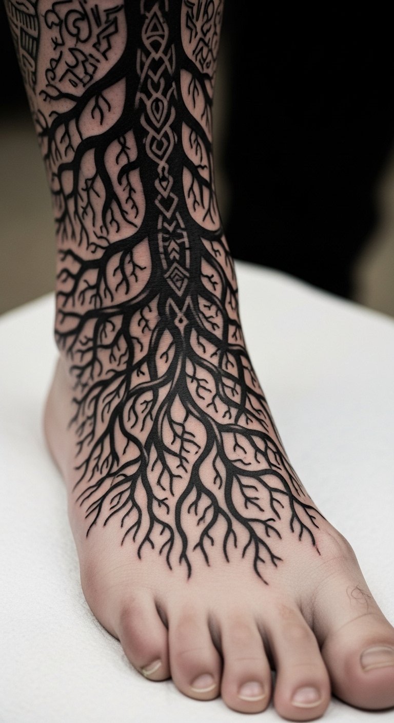 Trees symbolize growth and roots. Sketch in your journal for ideas. Test with affordable transfers. Choose your leg for progress tracking. Add leaves for a modern touch. Stick to black for budget reasons. It nurtures your ambitions. Advice: Match with growth goals. Find artists via social media. Bloom with this tattoo.