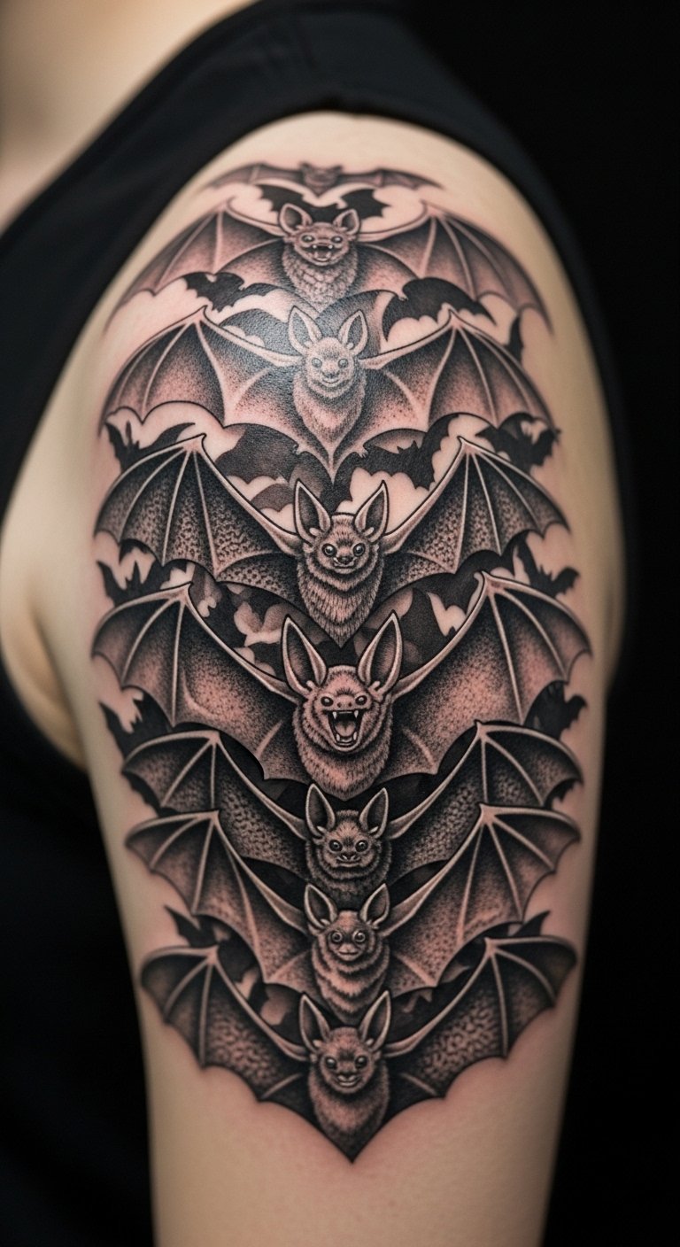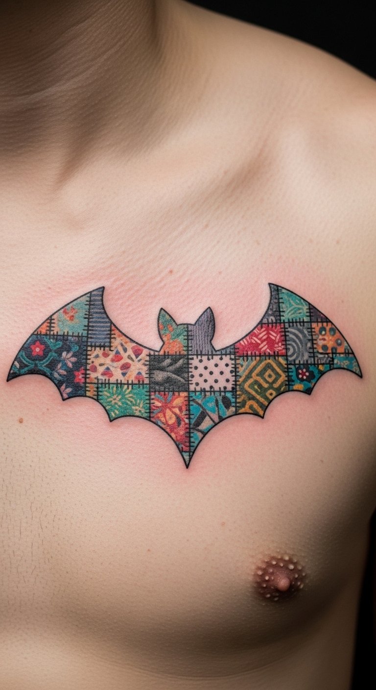 Build layers for a collage effect. Picture overlapping bat parts. Cut paper shapes to plan at home. Stack them for a 3D feel. Find artists who layer designs affordably. Try fabric on your skin for a test. Position it on your shoulder. Limit layers for cost control. Free collage apps assist in design. This adds dimension without hassle.
