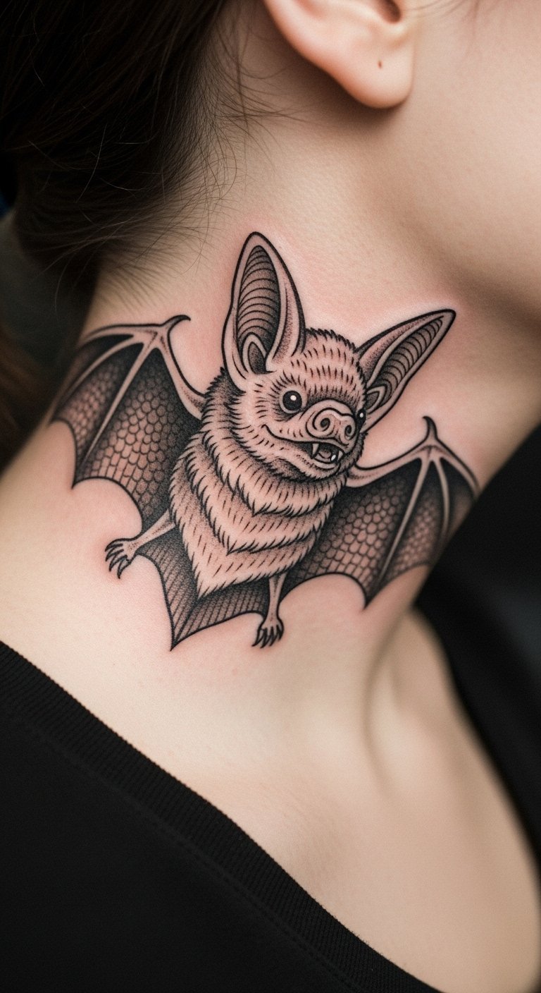 Mix soft shades with sharp lines for balance. Envision a bat with fuzzy edges and strong outlines. Draw it lightly with a pencil on paper to begin. Add soft areas with smudged charcoal for practice. Share this with a nearby artist for feedback; some offer free consultations. Use makeup sponges to test shading on your skin cheaply. Put it on your collarbone for easy access. Opt for smaller details to reduce fees. Apps with drawing features help refine your idea quickly. This style suits various tastes without much fuss.