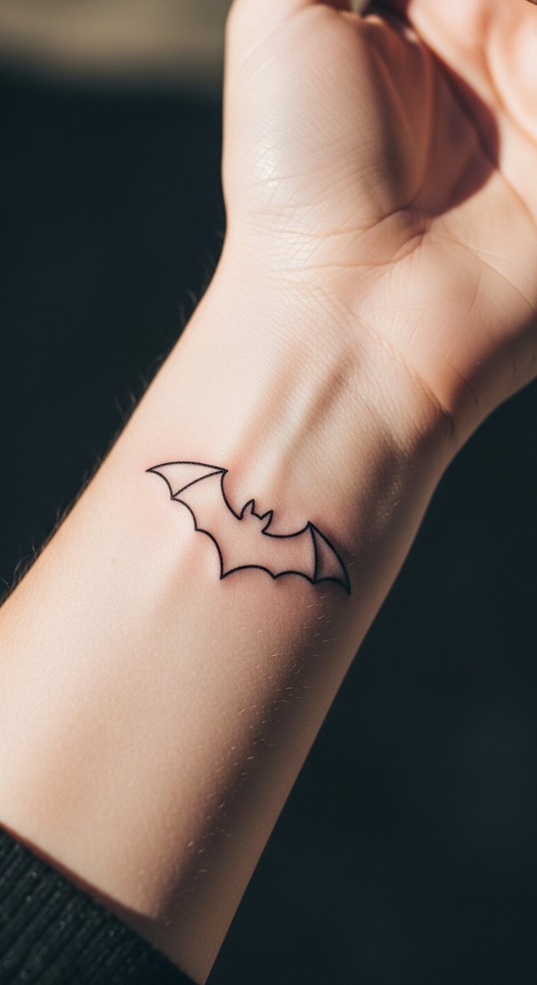 Keep it minimal with just an outline. Think of a clean bat shape. Draw it quickly with a pen on paper. Focus on smooth lines for elegance. Ask local shops for minimalist specials. Test with a fine-tip pen on your skin. Wear it on your wrist for everyday use. Small sizes mean lower prices. Apps make tracing easy. This design is straightforward and cost-effective.