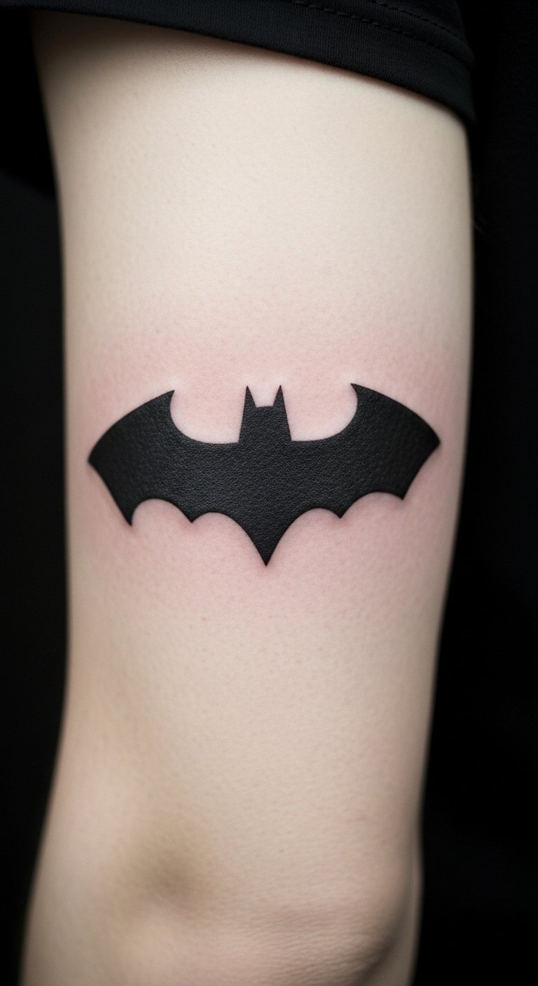 A classic Batman symbol says it all. This design keeps things straightforward and timeless. Start with a small version on your arm. It works for first-timers. Pick a local shop with fair rates. Look for artists under $100 for basics. Sketch your own idea at home using free apps. Draw the bat shape on paper first. Practice with a temporary marker on your skin. This helps you decide on size. Go for black ink to keep costs down. Avoid extras like color for now. Real talk: Healing takes a week or two. Keep the area clean and covered. You’ll feel like a hero every day. Try bandaging with household items. It’s an easy way to start your collection. Add this to show your core spirit.