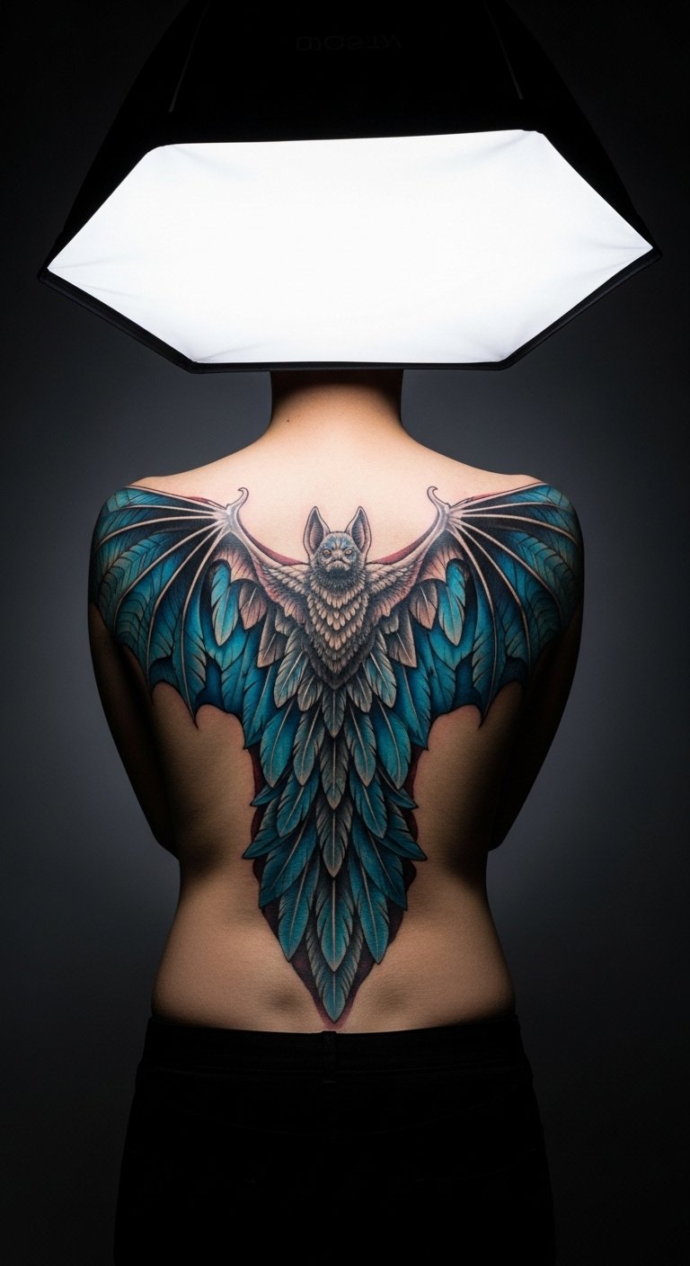 Colorful bat wings bring energy to your skin. This design pops with shades of blue and black. Place it on your back for a big impact. It’s perfect for showing off. Find an artist who uses affordable pigments. Aim for sessions around $150. Draw inspiration from online tutorials. Use colored pencils at home to plan. Experiment with different hues on paper. Keep it budget-friendly by sticking to two colors. This cuts down on time and money. Real talk: Prep your skin with simple lotions. It helps the ink set better. Healing might take longer with colors. Cover it with loose clothes daily. You’ll love how it stands out. Try a temporary version first with store-bought stencils. It’s a smart move for beginners.