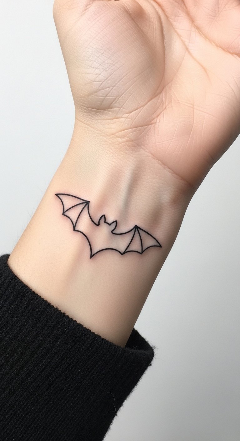 Minimalist bat outline is all about less. Just a clean shape on your wrist. It’s subtle yet powerful. Perfect for everyday wear. Find quick sessions for under $80. Draw your outline using a pen and paper. Keep lines straight and simple. This helps with planning. Stick to basic black ink. Real talk: Choose a visible spot like your wrist for motivation. Healing is fast with proper bandaging. Use what you have at home. You’ll enjoy the understated cool. Test with temporary tattoos from drugstores. It’s affordable and risk-free.