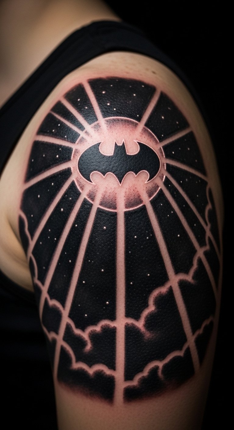Bat Signal in the sky lights the way. Depict the beam and bat. Put on your shoulder for signal. It’s a call to action. Seek signal artists for $170. Draw the beam simply. Use straight lines. Add glow effects. Real talk: Opt for night-inspired shades. Healing is quick with care. Keep covered initially. You’ll signal your spirit. Test with glow stickers. It’s affordable.