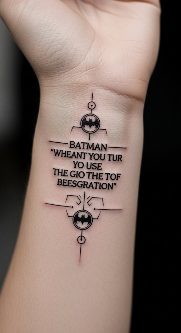 Batman quote integration adds meaning. Weave symbols around words. Put on your wrist for reminders. It’s motivational and deep. Look for integration for $160. Plan quotes with doodles. Use notebooks. Keep it integrated. Real talk: Select spots for easy reading. Healing needs care. Use home remedies. You’ll integrate wisdom. Try word puzzles. It’s simple.