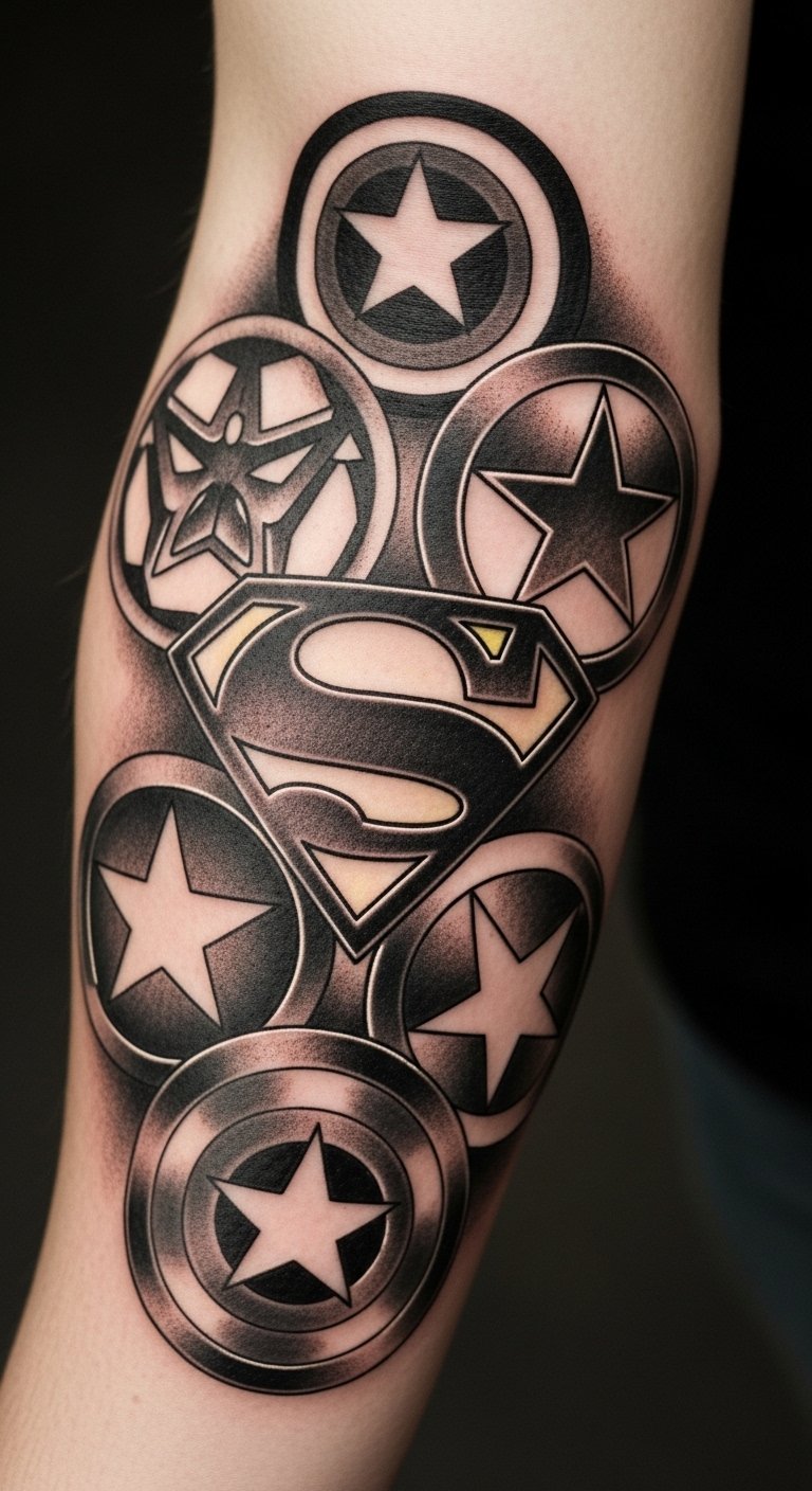 Superhero emblem combo unites icons. Mix Batman with others. Place on your arm for combo. It’s versatile and epic. Seek combo artists for $200. Sketch emblems together. Use overlaps. Keep it combo. Real talk: Pick your favorites. Healing requires attention. Use home aids. You’ll combo heroes. Try sticker sets. It’s budget-friendly.