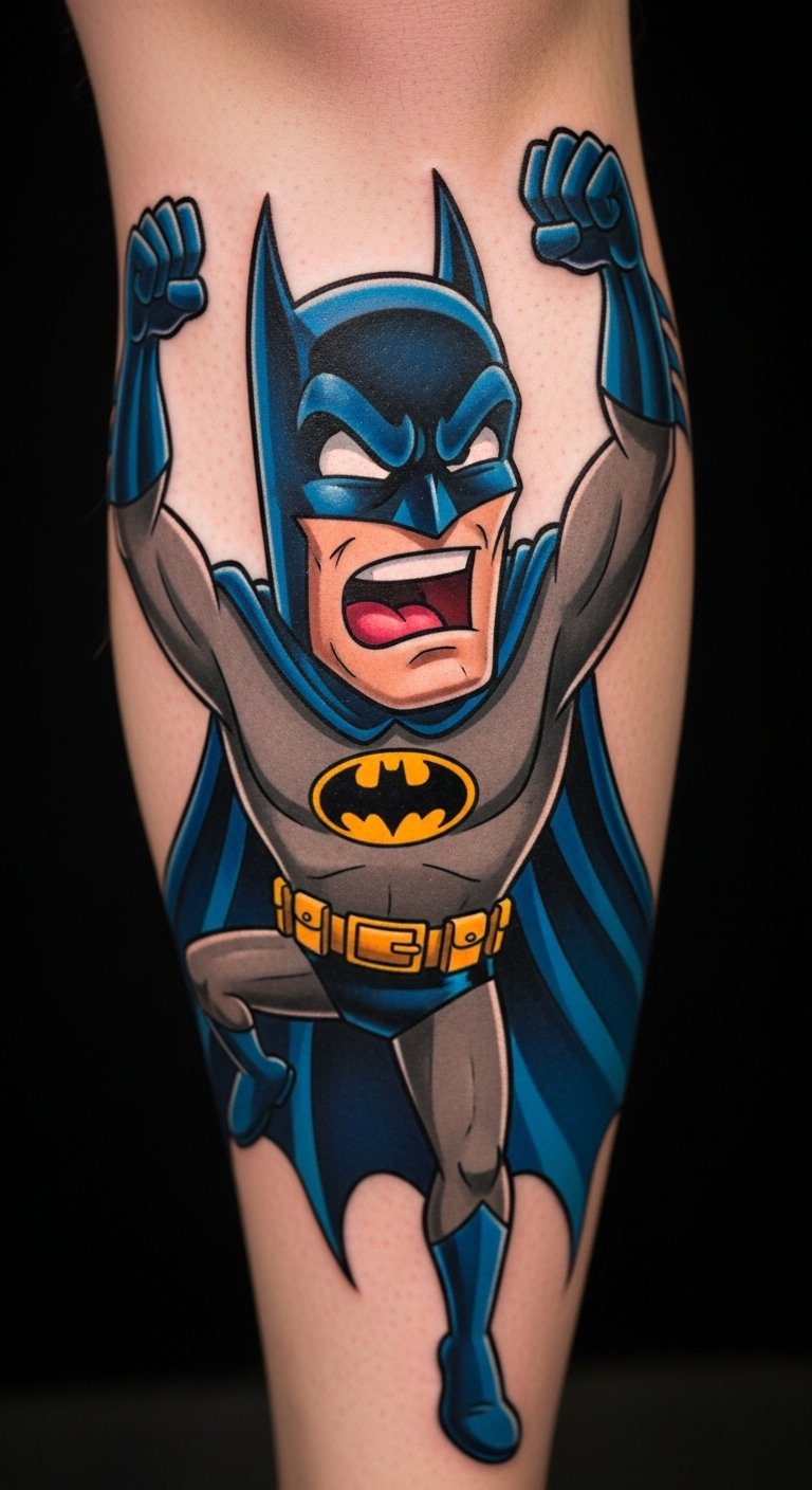 Animated Batman character livens up skin. Use cartoon traits. Put on your leg for animation. It’s playful and spirited. Find character pros for $170. Draw animations at home. Use expressions. Add character. Real talk: Go for expressive designs. Healing is quick. Use simple methods. You’ll animate daily. Practice with cartoons. It’s free.