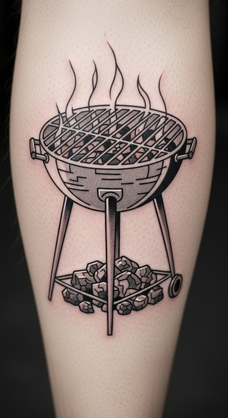 Think about getting a tattoo that looks just like your backyard grill. A realistic design brings the heat to life with detailed flames and metal textures. Start small with a sketch on paper to see how it fits. Use free online tools to experiment before visiting a shop. For a budget option, draw it yourself with markers and snap a photo for reference. Keep costs low by choosing a local artist over big names. Bold colors make it pop, but stick to black and gray for simplicity. This style works great for arm spots. Try a DIY mock-up at home with temporary tattoos from the dollar store. Easy steps: pick your grill type, add personal touches, and get inked when ready.