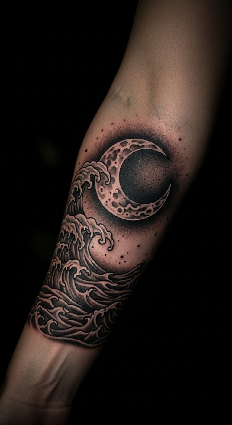 Moonlit tides blend night and sea. Picture one on your forearm for serenity. Jot phases in a book. Get stick-on moons for checks. Choose glowing elements for savings. Set on your arm for view. Mix in stars with apps. This method is simple and cheap. Find tide pros nearby. Use everyday care. Easy actions bring peace.