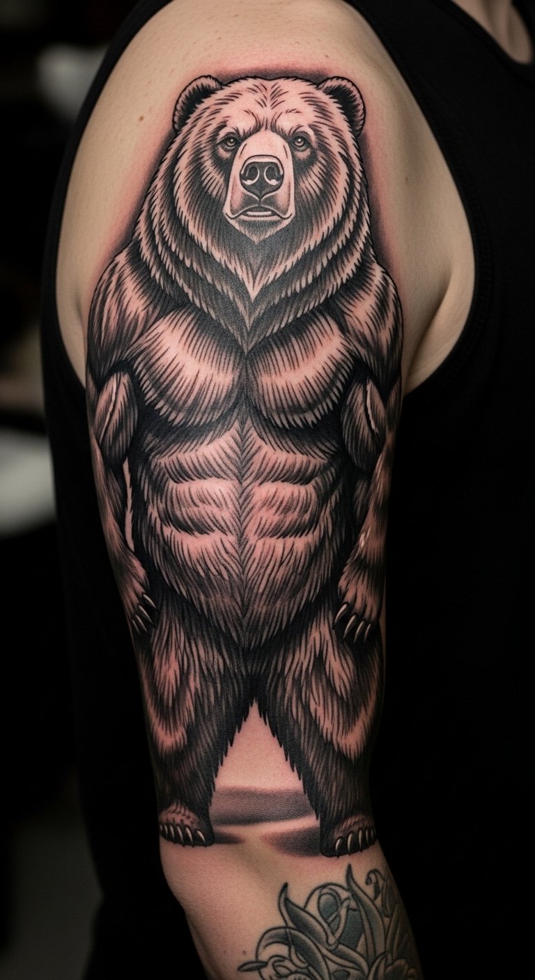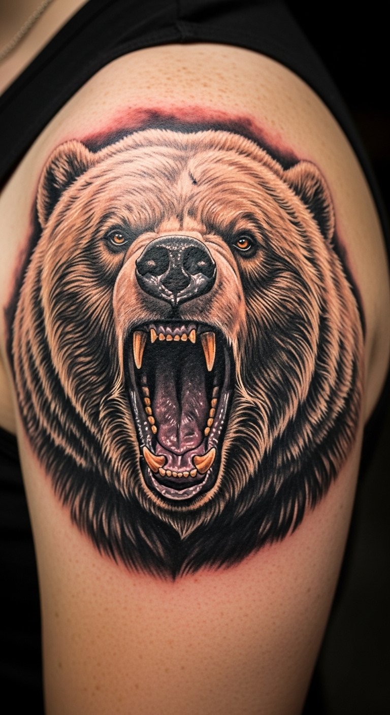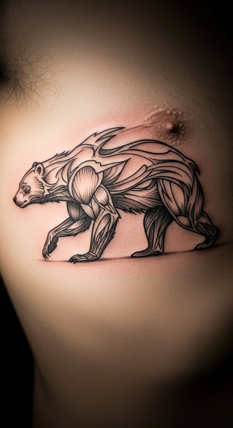 Think about a roaring bear tattoo if you want to show off pure power. This design brings the bear to life with every detail. Start with a simple sketch on paper to plan it out. Use free online tools like drawing apps to experiment before hitting the studio. For a budget option, practice shading techniques at home with markers. Keep costs low by choosing a local artist over big names. Bold lines make it pop, so focus on key areas like the eyes. This tattoo works great on your arm for easy visibility. Add personal touches, like a small scar, to tell your story. Go for black and gray ink to keep things affordable. It’s a straightforward way to feel empowered every day.