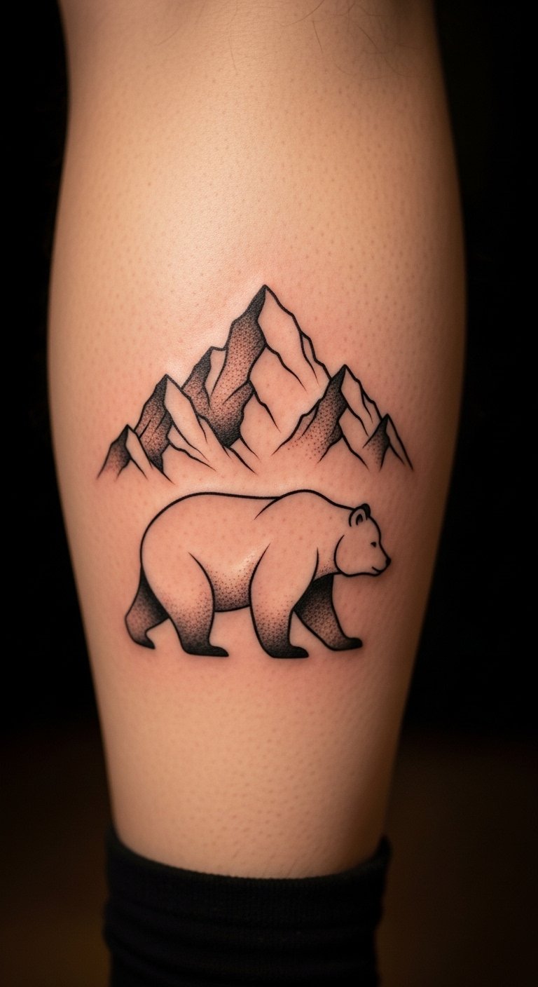 Pair a bear with mountains for a nature-inspired look. This combo brings the outdoors to your skin. Start by combining free clipart of bears and peaks on your phone. Practice drawing it at home with pencils. Opt for a smaller scale to save on ink costs. Position it on your leg for easy viewing. Add clouds with basic sketches for flair. It’s a budget-friendly choice that evokes adventure.