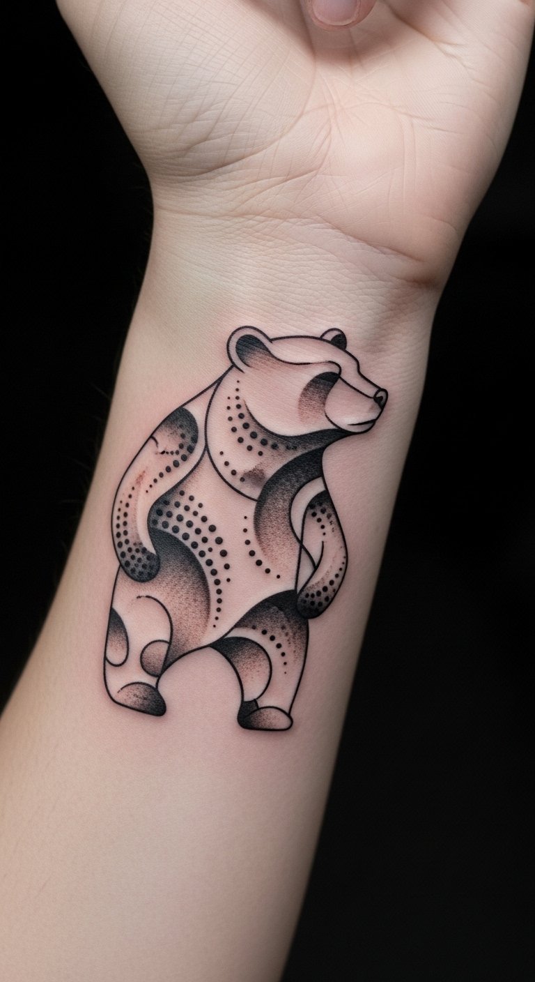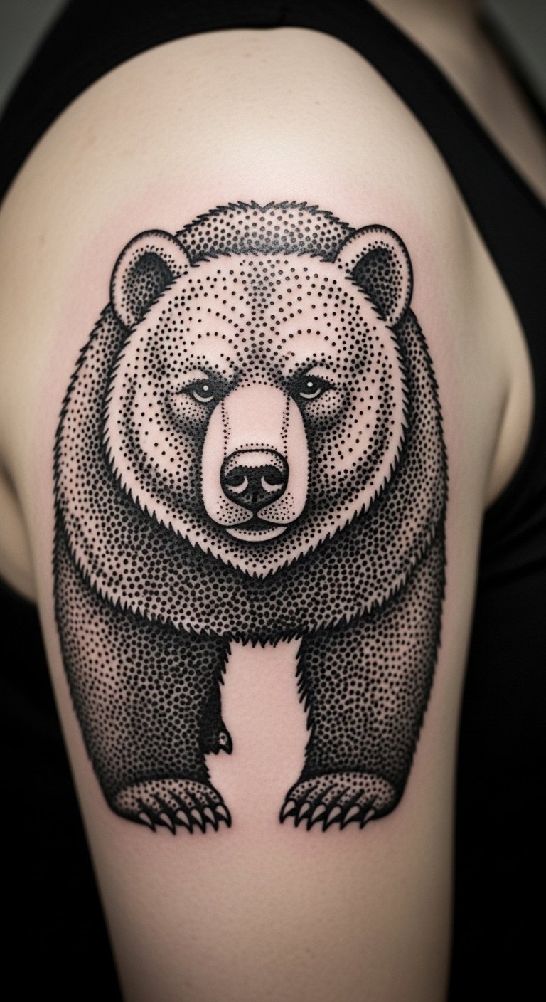 Dotwork bears create texture with points. Practice dotting on paper at home. This free method helps refine ideas. Opt for fewer dots to stay cheap. Place it where it fits your life. It’s a simple technique for depth.